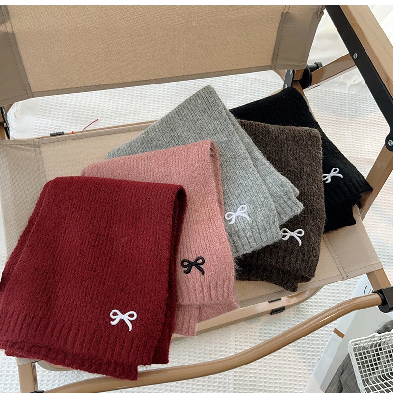 Comprar Gorros de punto para niños, conjunto de bufandas, bonito sombrero bordado con lazo coreano, gorro liso a la moda para niñas, accesorios cálidos para invierno 2024