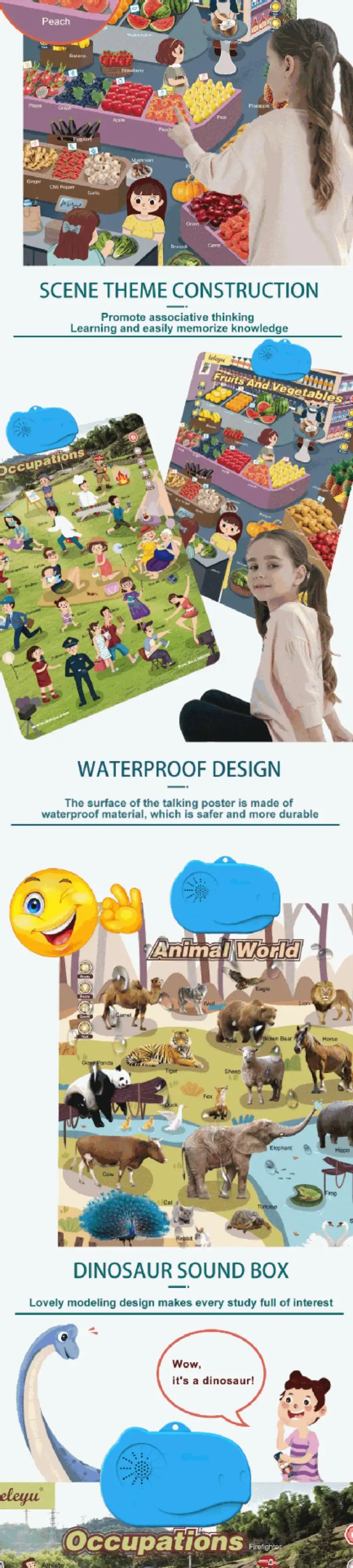 JUGUETE EDUCATIVO PARA EL DESENVOLVIMIENTO DE LOS NIÑOS PRINCIPALES: aprender el ABC es la base de leer y escribir que queremos comenzar a enseñar a nuestro hijo temprano.Nuestro póster de aprendizaje interactivo es imprescindible para que niños pequeños y preescolares aprendan alfabetos, números y reconozcan animales y frutas.Ayuda a enseñar a los más pequeños a pronunciar comenzando con los conceptos básicos del oído, reconociendo los sonidos y animándolos a expresar palabras a través del tiempo de cuestionamiento y el tiempo de ortografía.