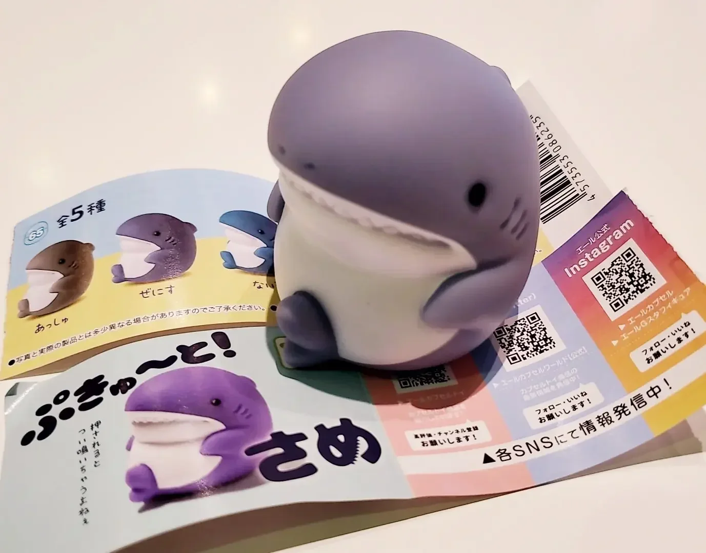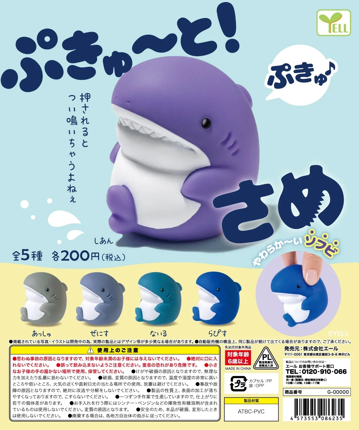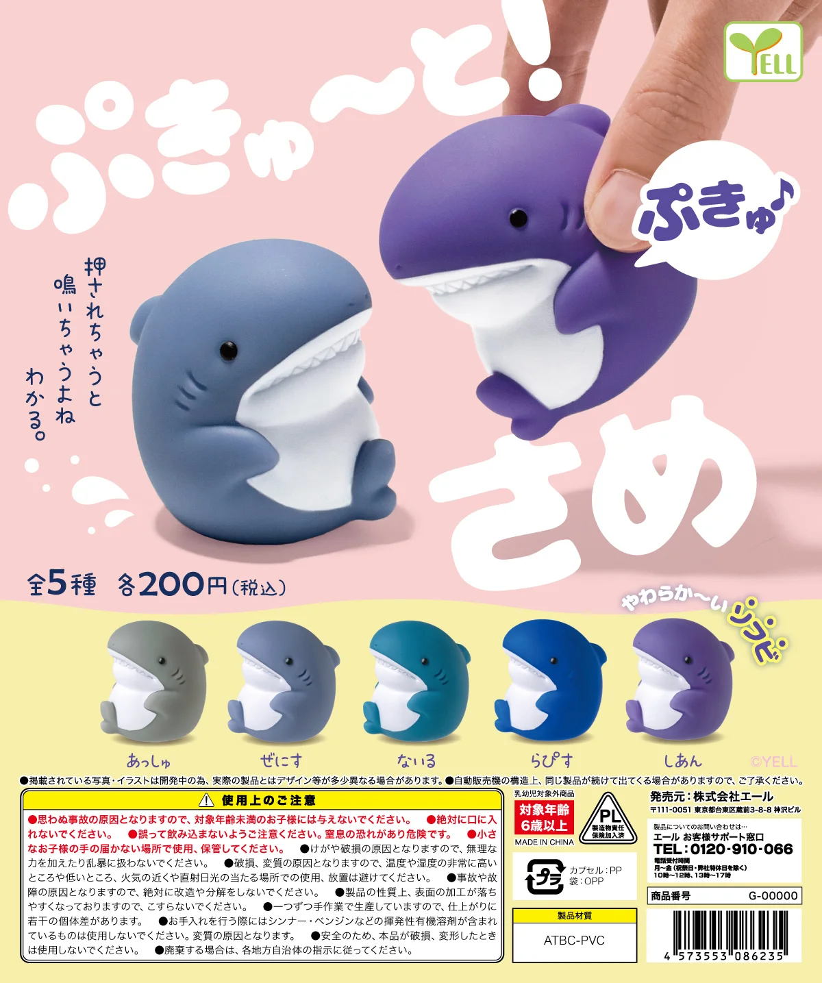 Cuando lo presionas (pellizcas), el vinilo suave "Shark" hace "Pukyuu".sonido.