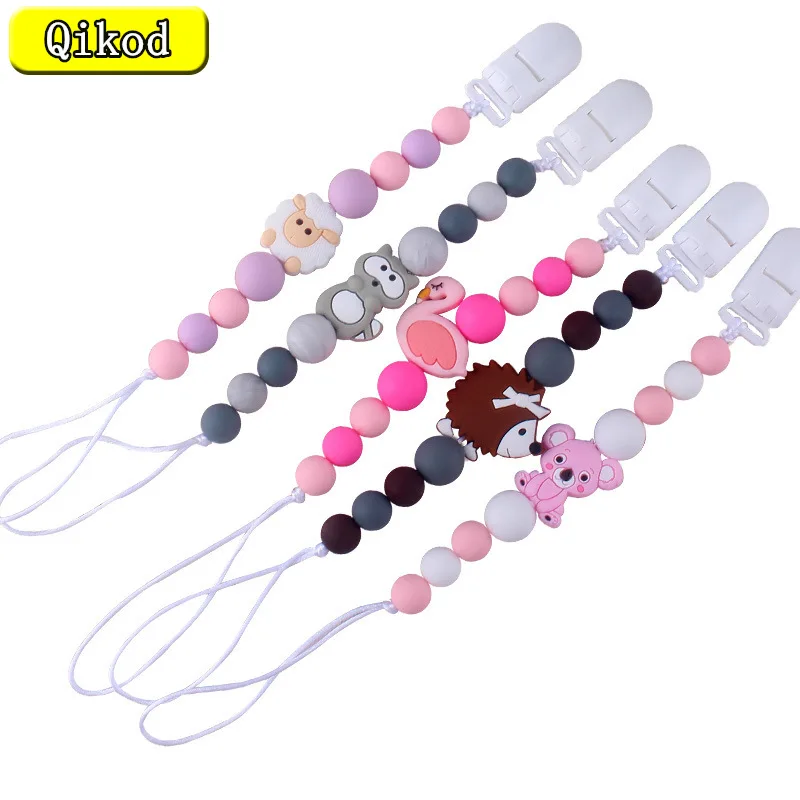 Gran oferta de Clips para chupete de dentición de silicona, cadena de chupete para bebé, cuentas sueltas de silicona, variedad de viñetas de animales, mordedor Molar, juguete para regalo