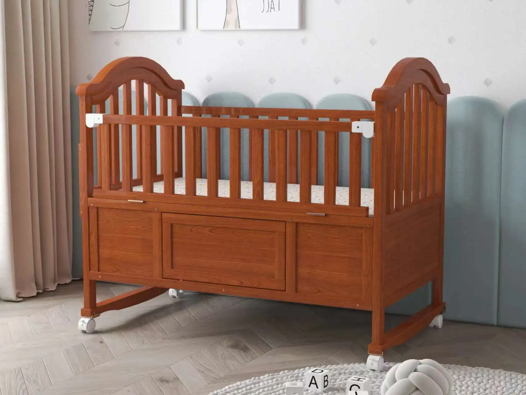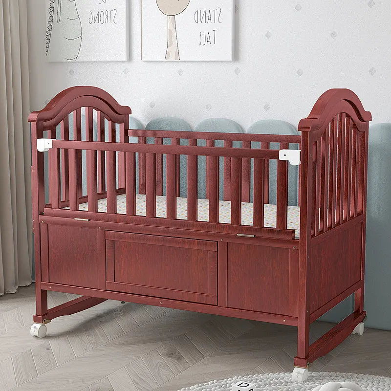Gran oferta, cuna de bebé de madera oscilante multifunción 3 en 1 de estilo europeo, muebles de madera maciza, ruedas de altura ajustables