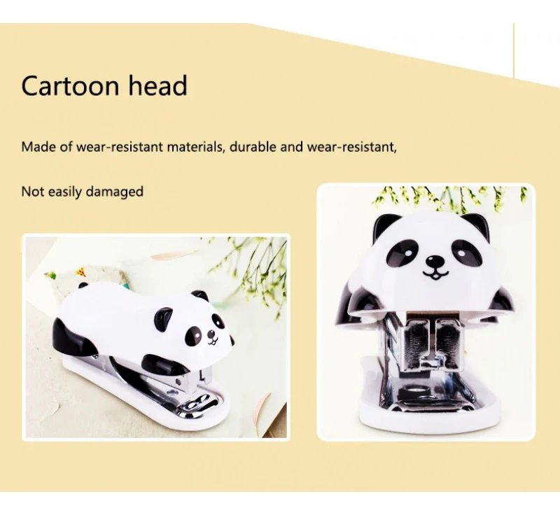 Grapadora de dibujos animados de Panda bonito, Mini máquina de encuadernación pequeña portátil, suministros de escritorio de oficina, herramienta de grapado de papelería Adorable para estudiantes