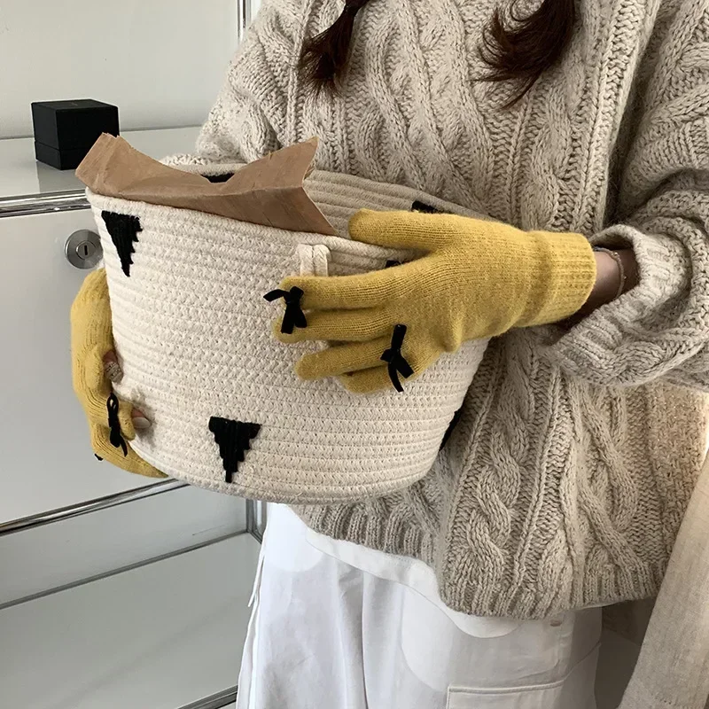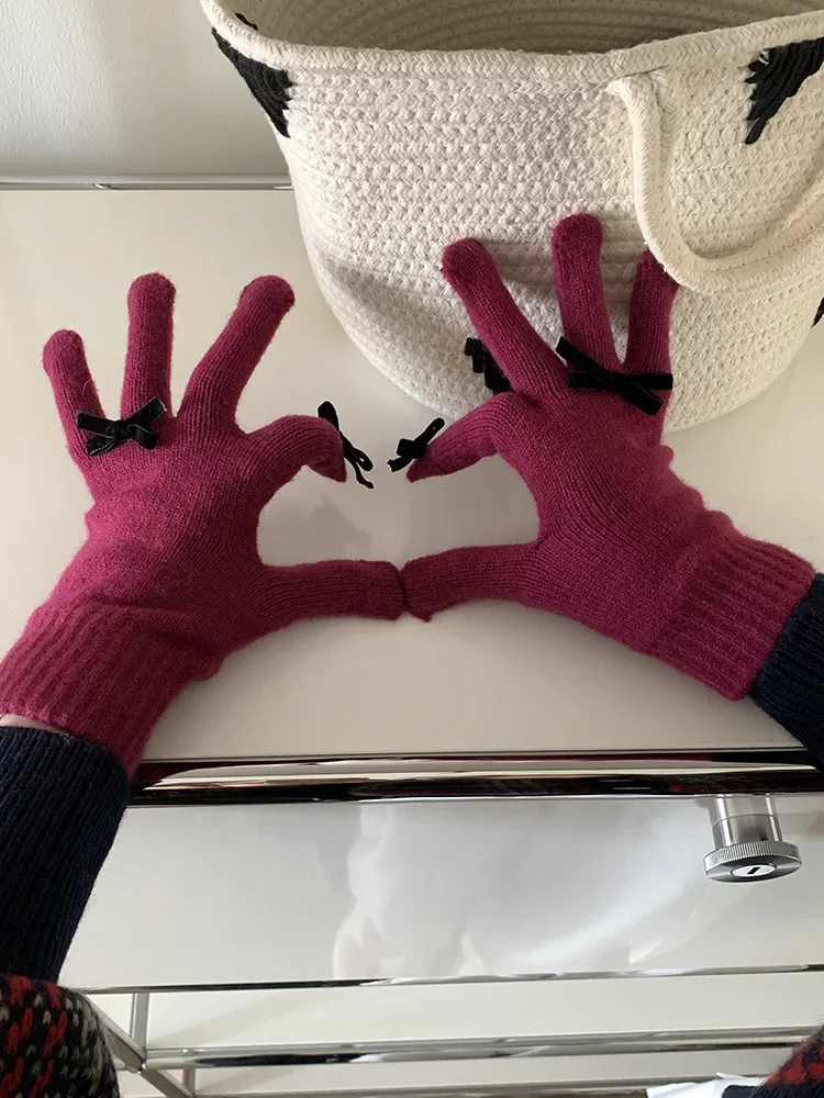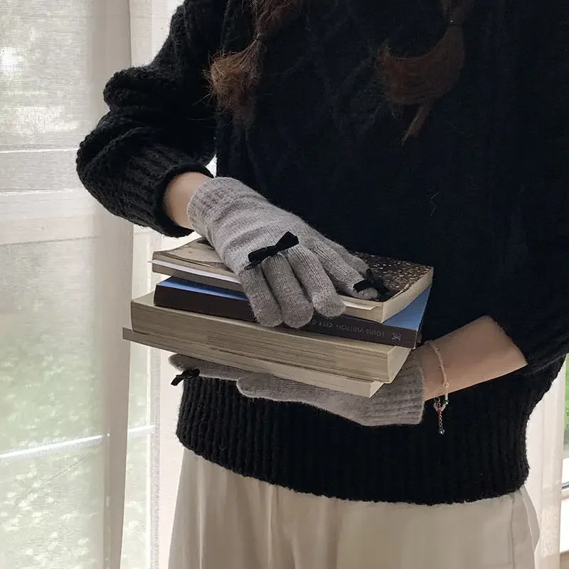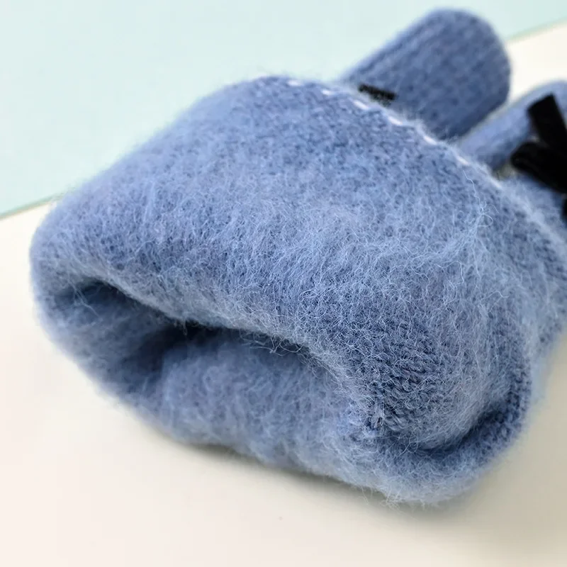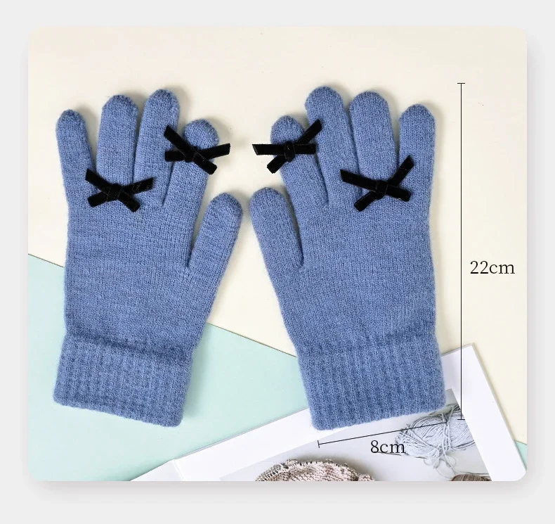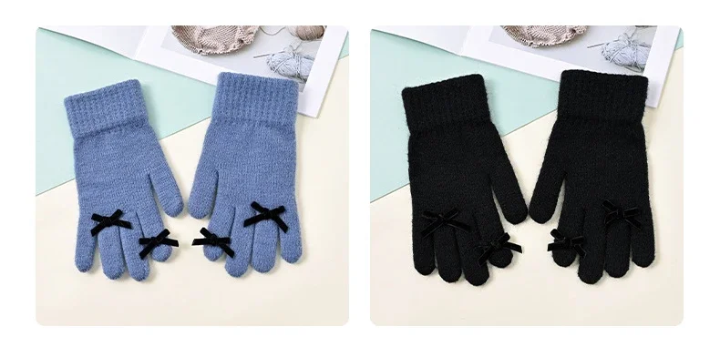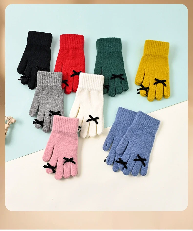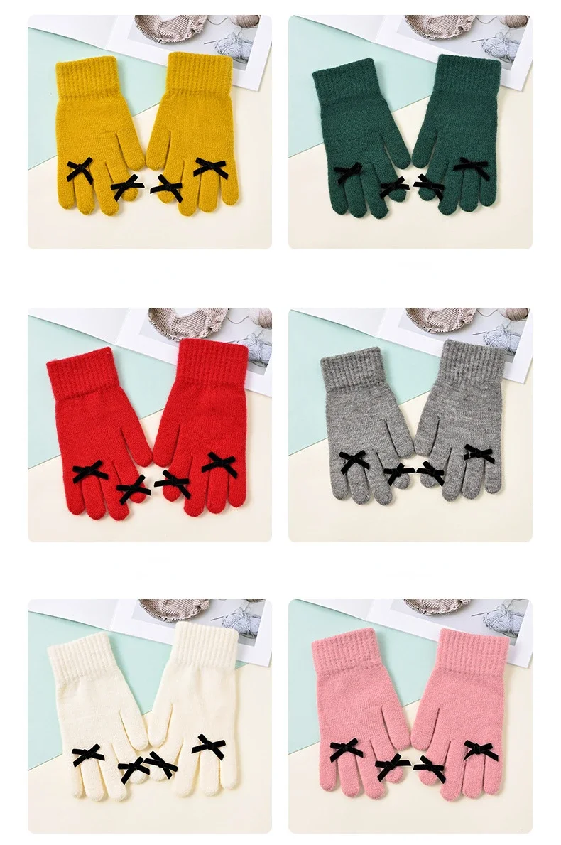 Guante cálido de lana para chica estudiante, moda coreana, pajarita, Color sólido, guante para niños, Otoño Invierno, cálido, guante tejido de Cachemira para exteriores
