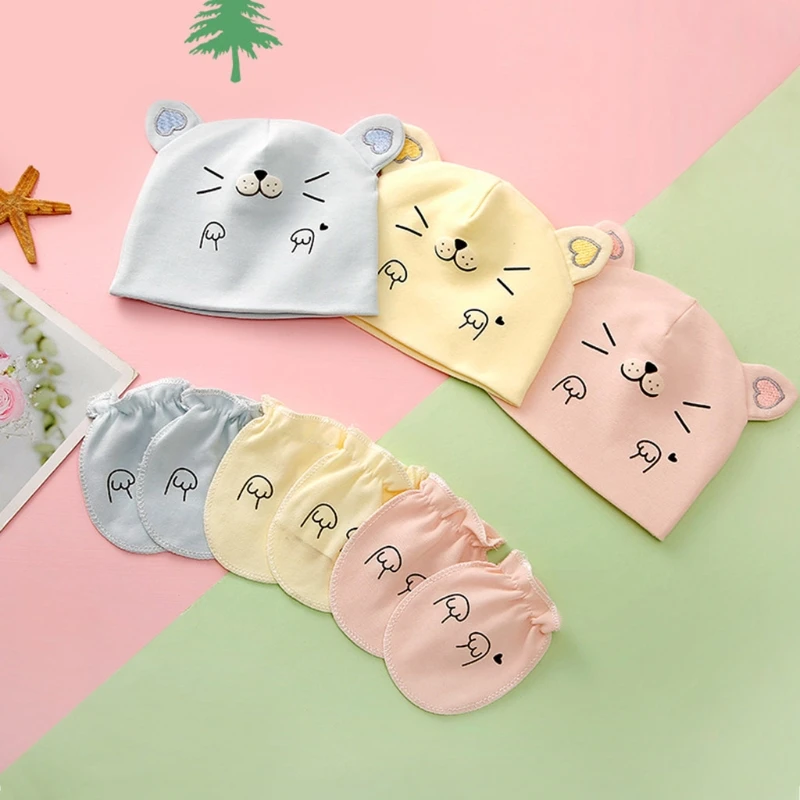 Comprar Guantes de algodón antiarañazos para bebé, conjunto de sombrero infantil, protección facial para recién nacido, mitones antiarañazos, gorro cálido de algodón transpirable