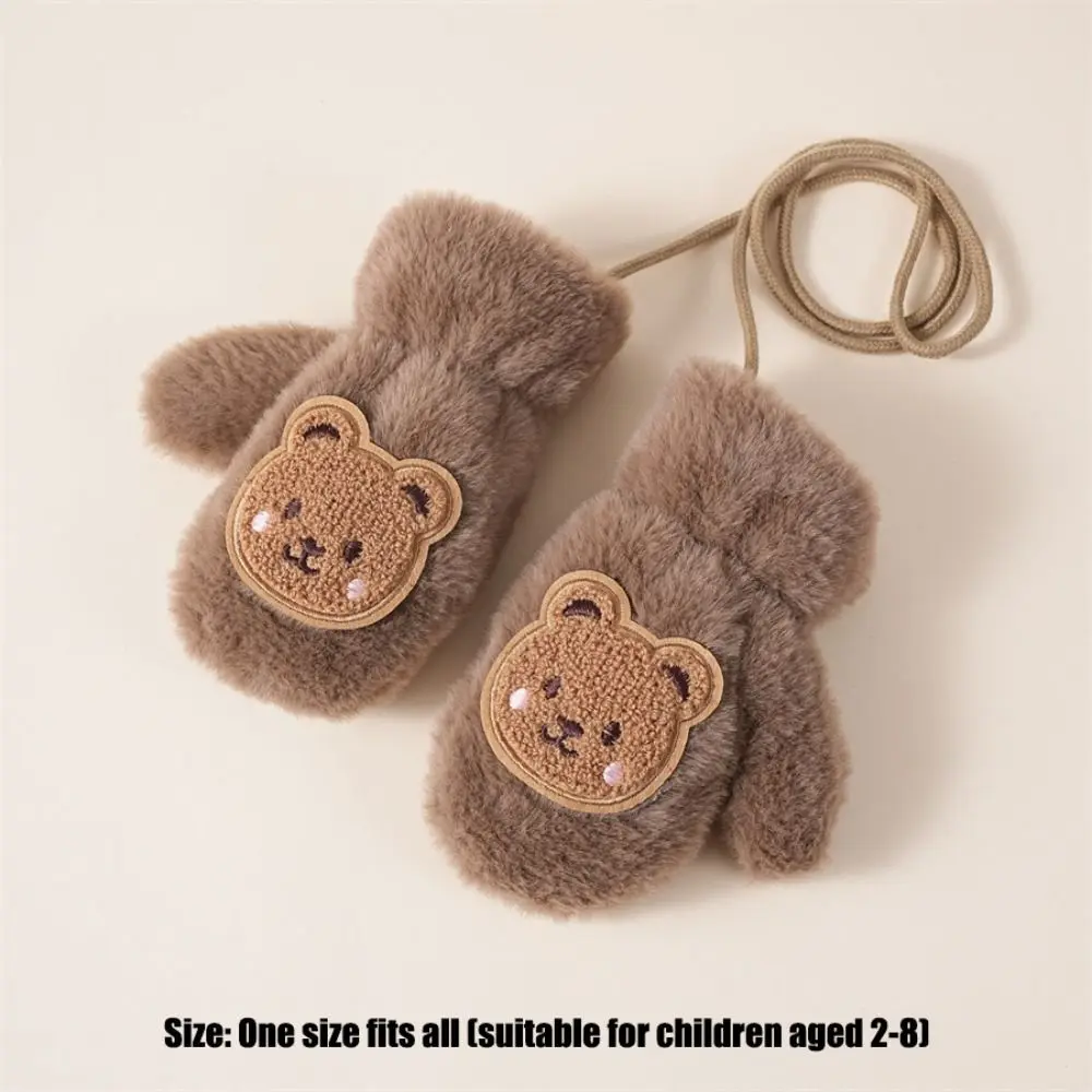 Color: Brown, beige, white Package include: 1 Pair Children's plush gloves