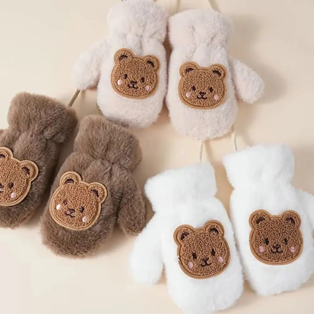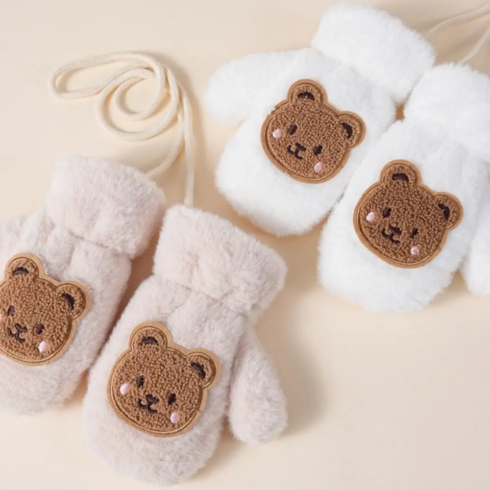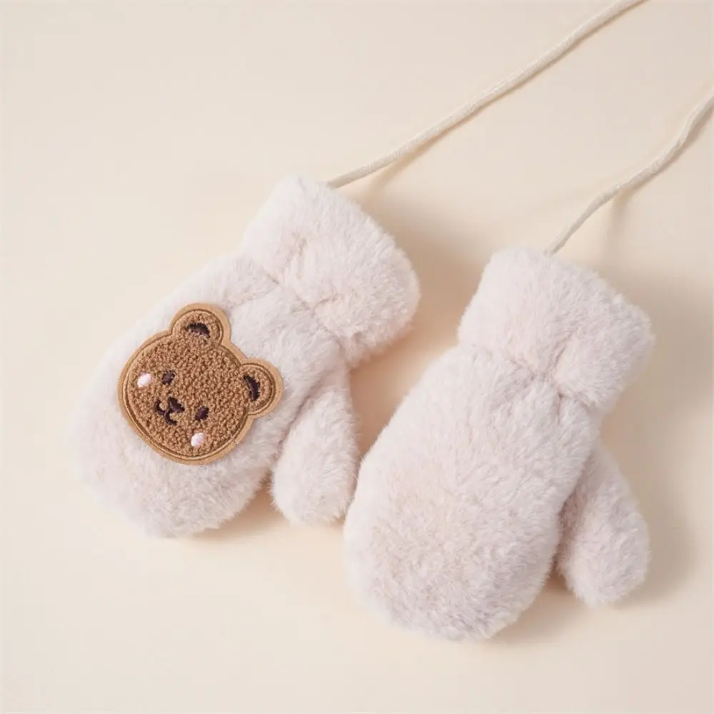 Comprar Guantes bonitos de oso de dibujos animados para bebé, guantes gruesos para mantener el calor, guantes cálidos para niños con cordón para el cuello, manoplas a prueba de frío para invierno