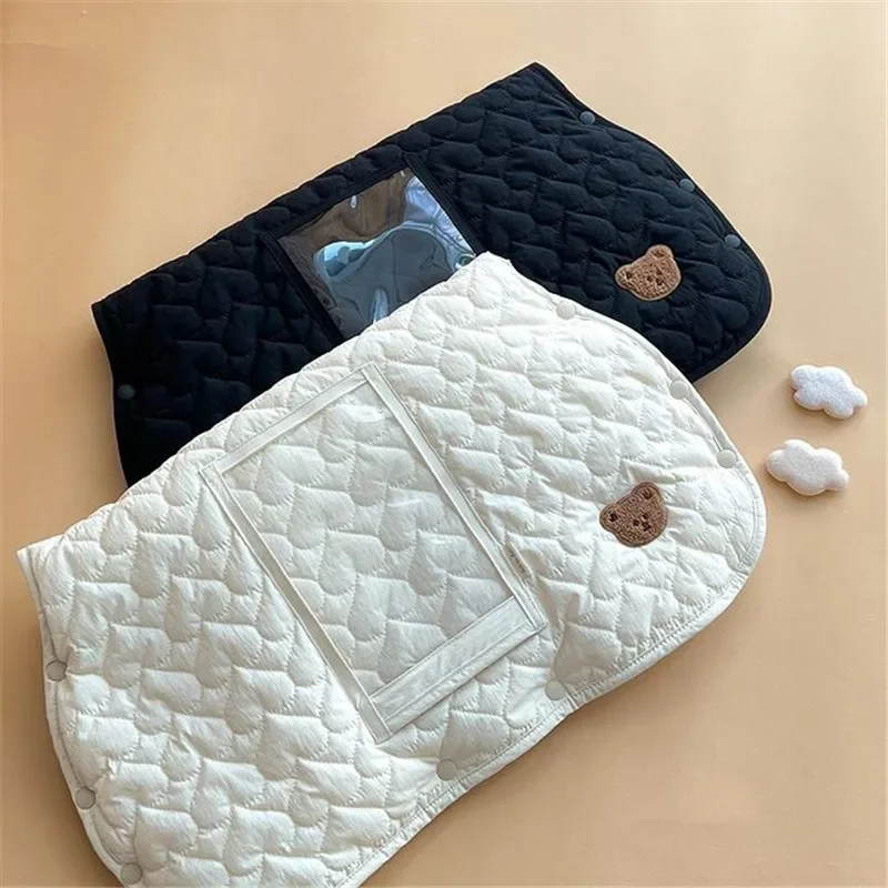 Guantes cálidos para cochecito de invierno, guantes impermeables, accesorios para cochecito, manopla para cochecito, manopla de mano de lana de piel con bolsillo para teléfono