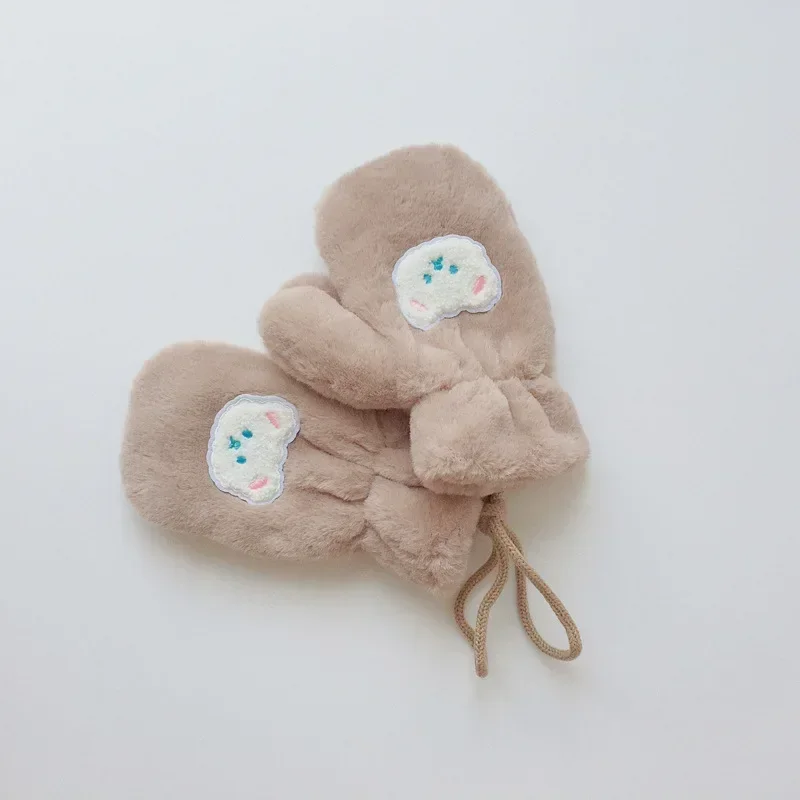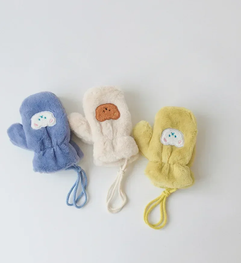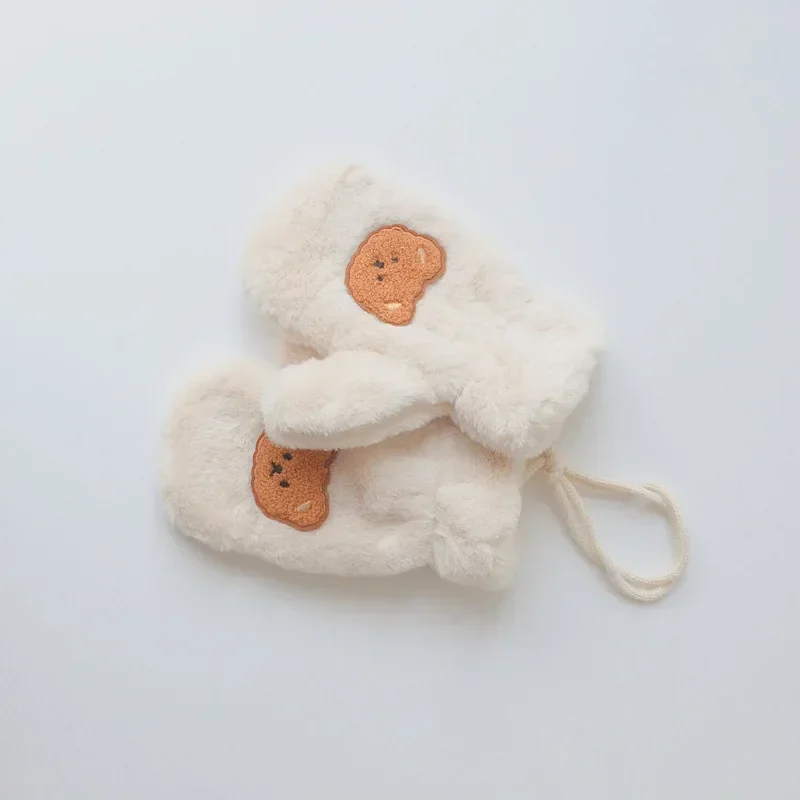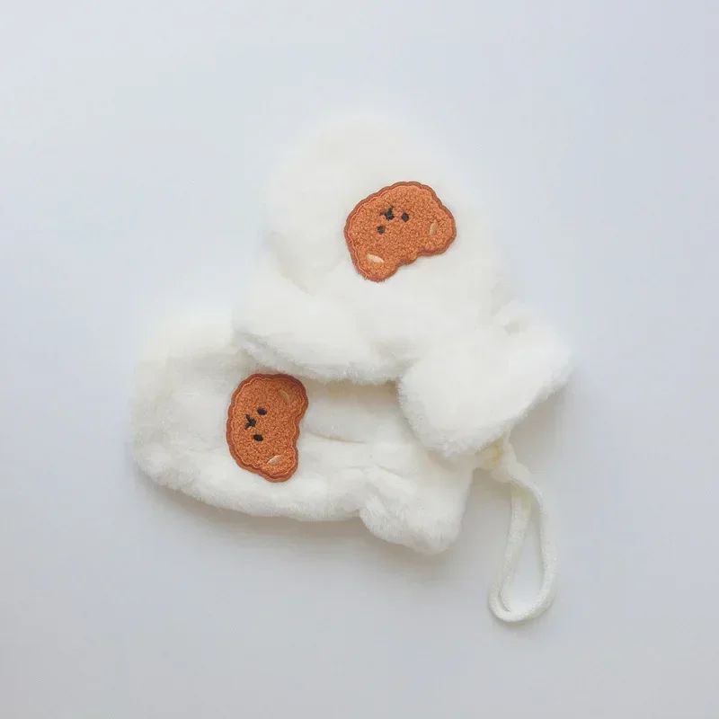 Guantes cálidos de invierno para niños y niñas, mitones de oso de dibujos animados coreanos para niños pequeños, guantes cálidos para exteriores, accesorios para niños