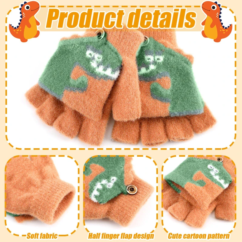 Guantes sin dedos de invierno para niños, manoplas para dedos para niños pequeños, manoplas de medio dedo convertibles de punto con solapa para edades de 5 a 10 años