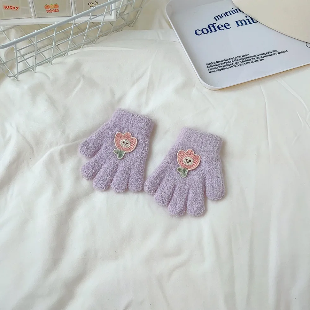 Comprar Guantes elásticos bonitos y gruesos de terciopelo para niños, guantes de invierno con dedos completos, guantes suaves que mantienen el calor para niños de 1 a 3 años
