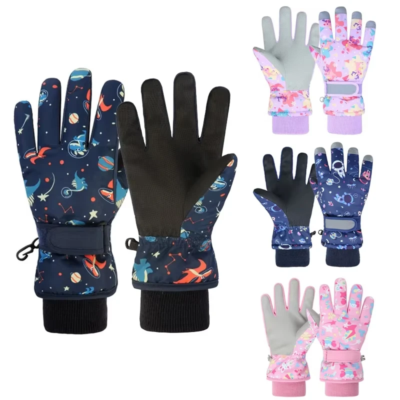Guantes de esquí para niños, guantes cálidos de Snowboard gruesos impermeables de alta calidad para invierno, guantes de esquí térmicos cálidos con revestimiento antideslizante de dibujos animados