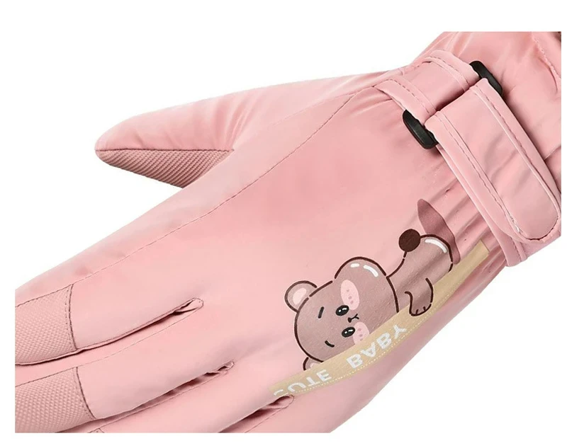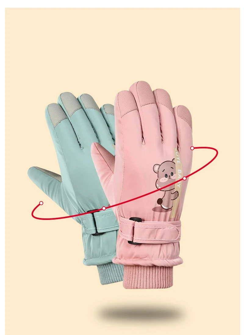 Comprar Guantes de esquí para niños y niñas, guantes de invierno impermeables para esquiar al aire libre, guantes gruesos de terciopelo con cinco dedos