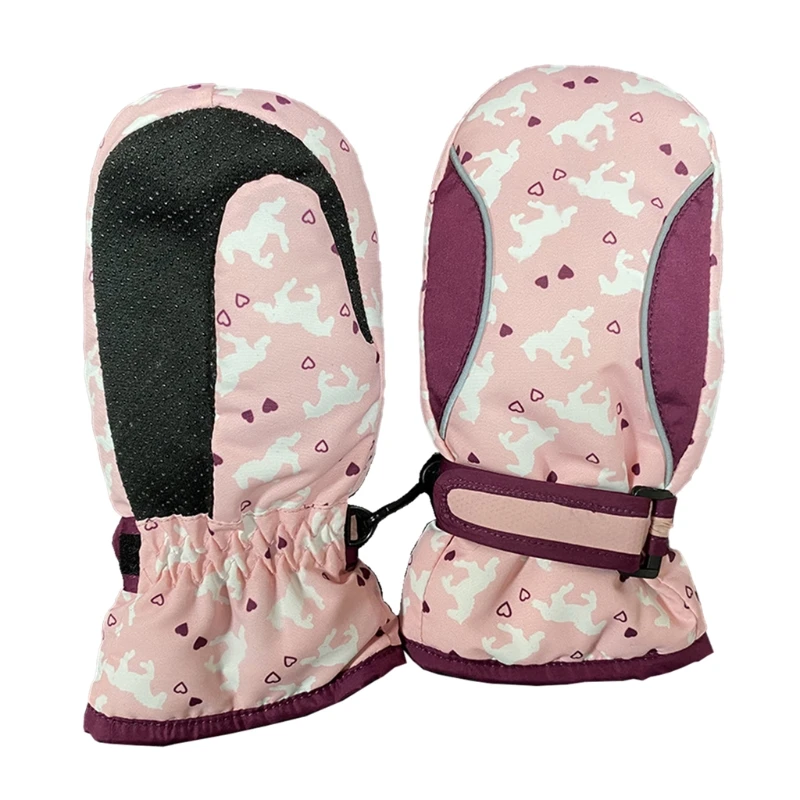 Niños Niñas Niños Mitones Niños Guantes de esquí Grueso Cálido Pony Impreso Impermeable A prueba de viento Guantes de nieve para deportes al aire libre QX2D