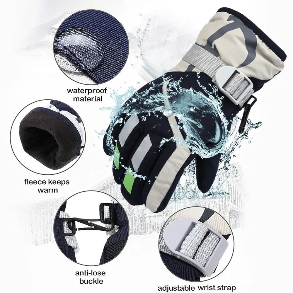 3.Estos guantes de nieve de invierno para niños adoptan un diseño de gancho y bucle, y la muñeca tiene una banda elástica, que no solo puede evitar la entrada de aire frío y nieve, sino que también hace que sus hijos se usen y se quiten fácilmente y evitar que los guantes se caigan accidentalmente.