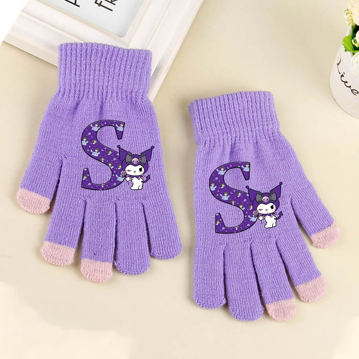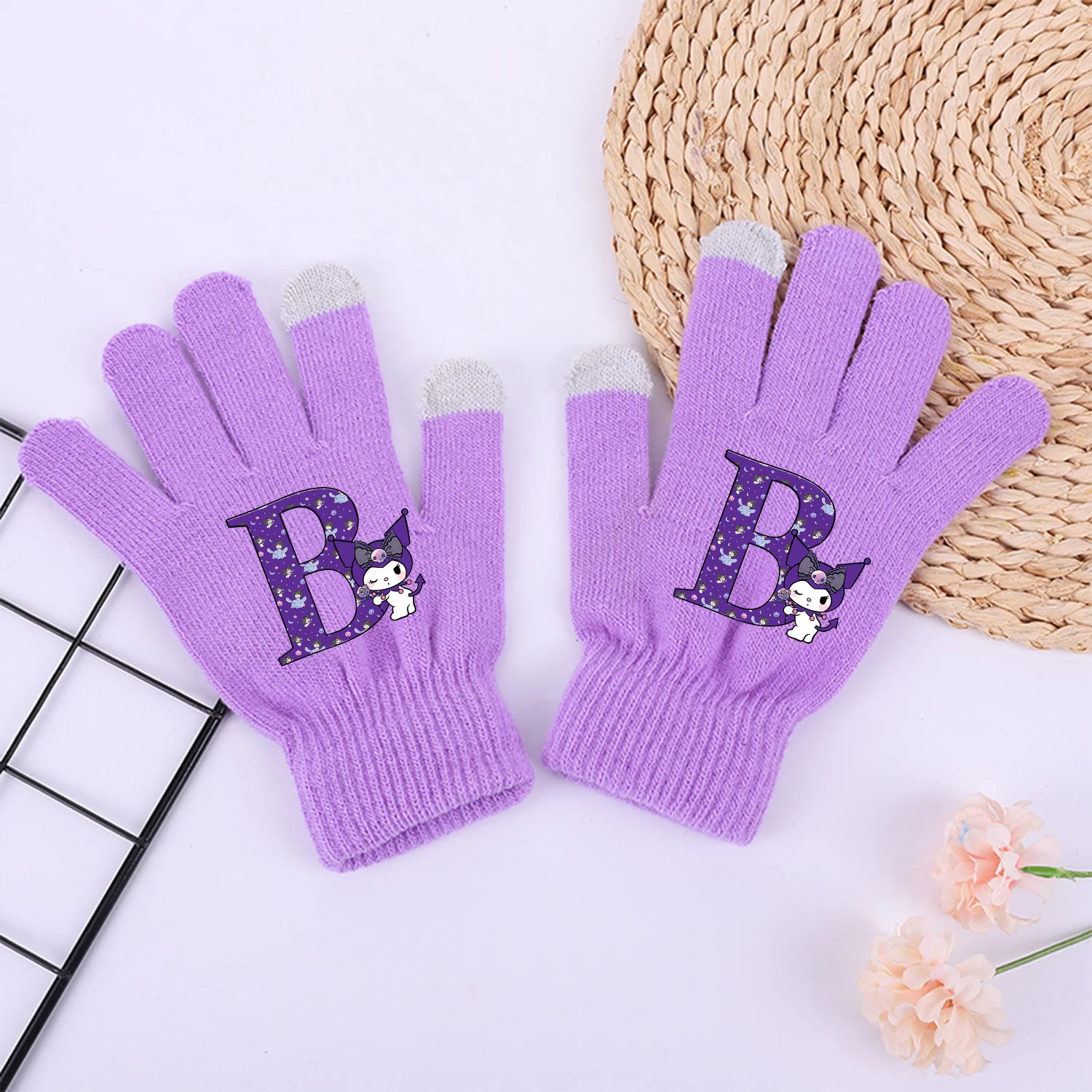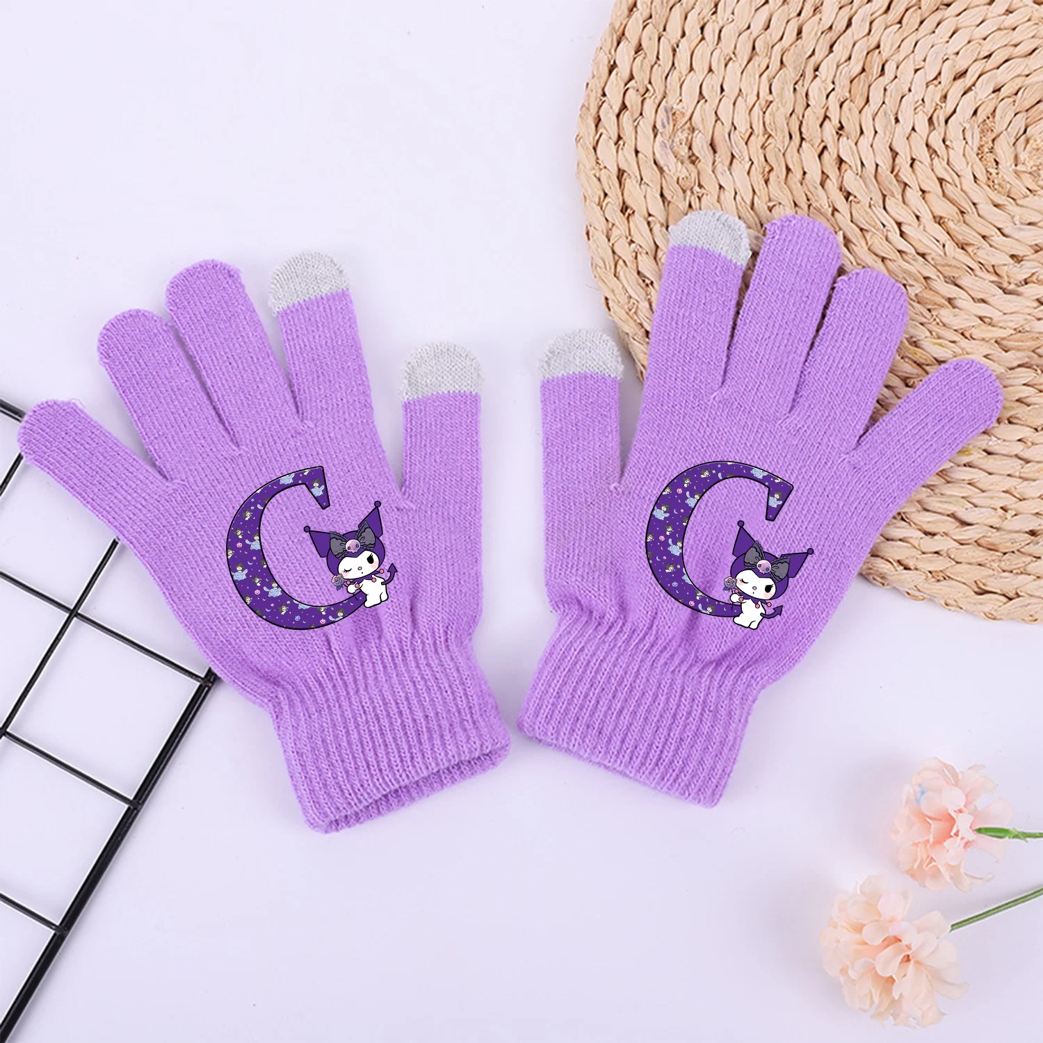 Guantes Kuromi para niñas, guantes de pantalla táctil con letras A-Z, dibujos animados Kawaii, accesorios de ropa cálidos para invierno, regalo de Navidad para niños