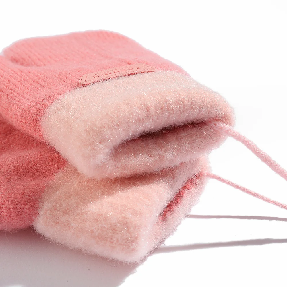 Guantes de lana de invierno para bebé, manoplas tejidas con forro de felpa para niños, guantes sin dedos con cuello Halter y manos cálidas, accesorios para niñas y niños de 1 a 6 años
