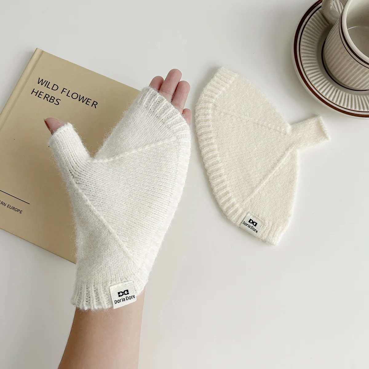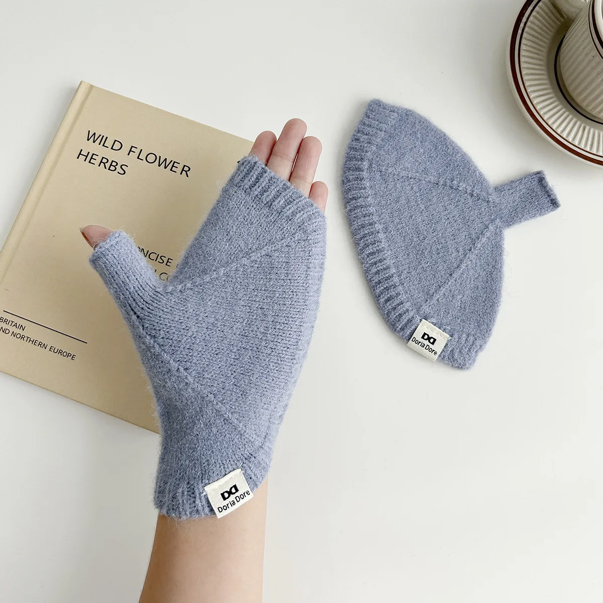 Guantes de lana tejidos con medio dedo: color liso, versátiles, gruesos y cálidos para otoño-invierno. Compatible con pantalla táctil, calentadores de muñeca.