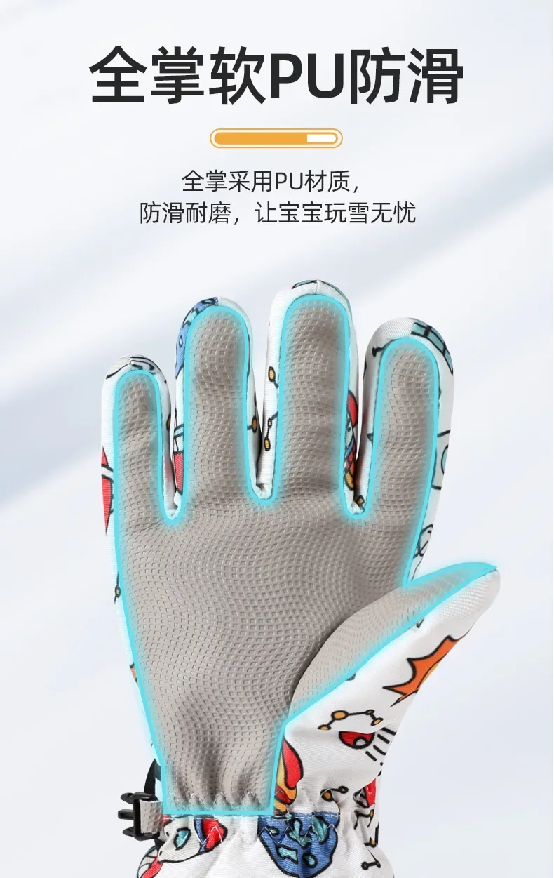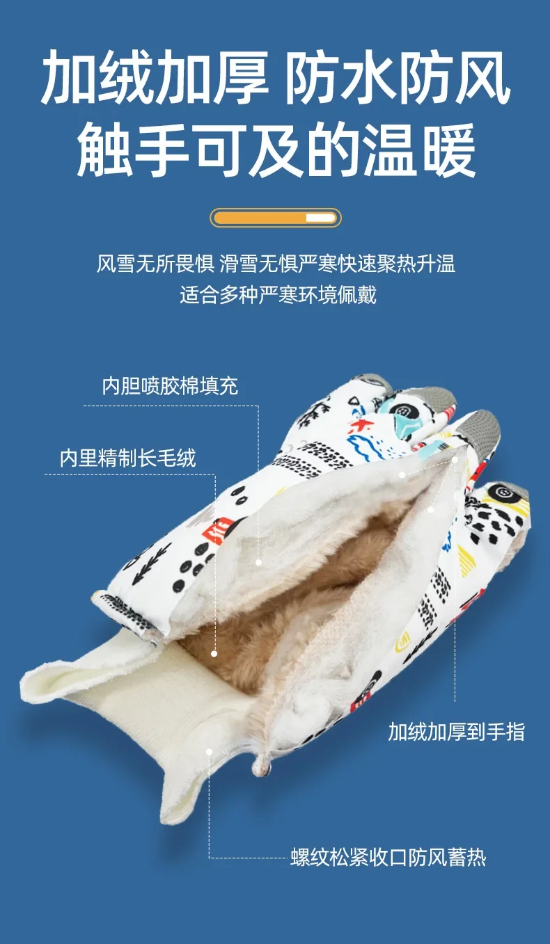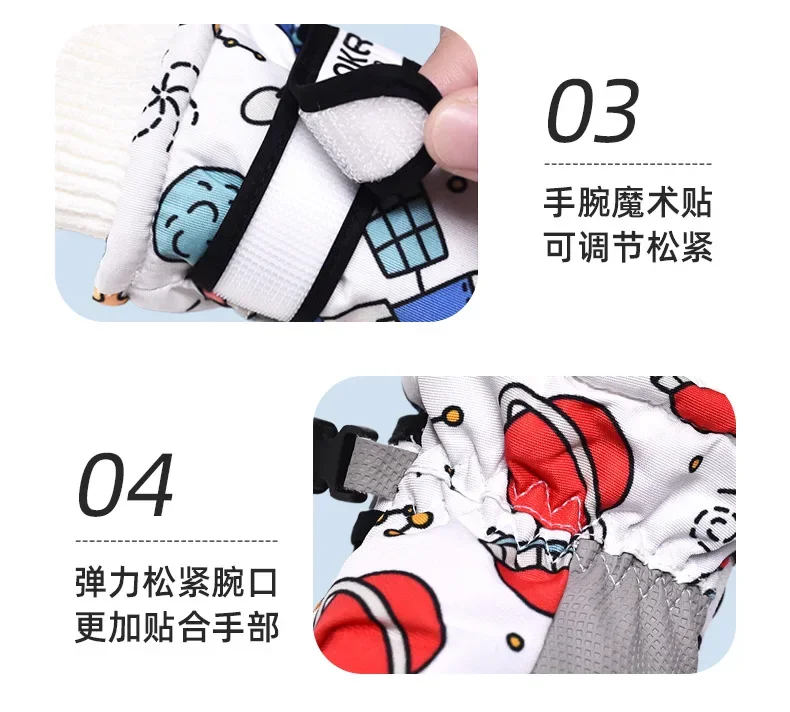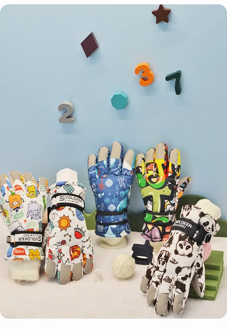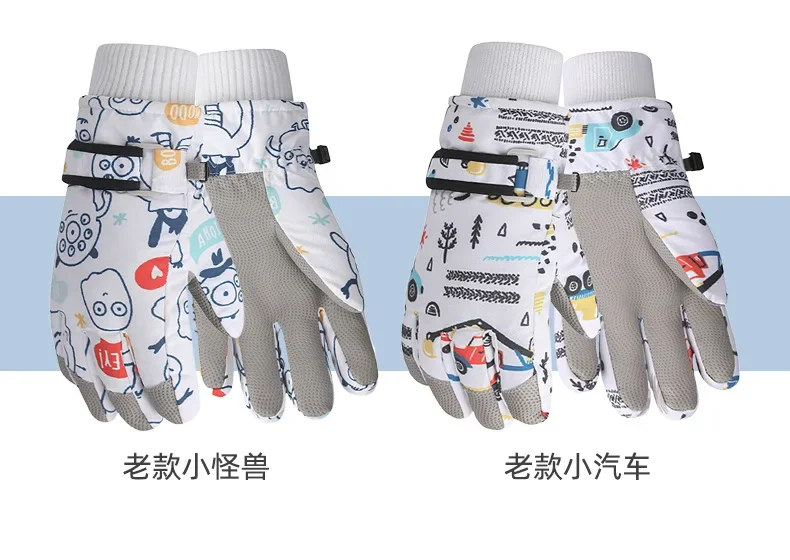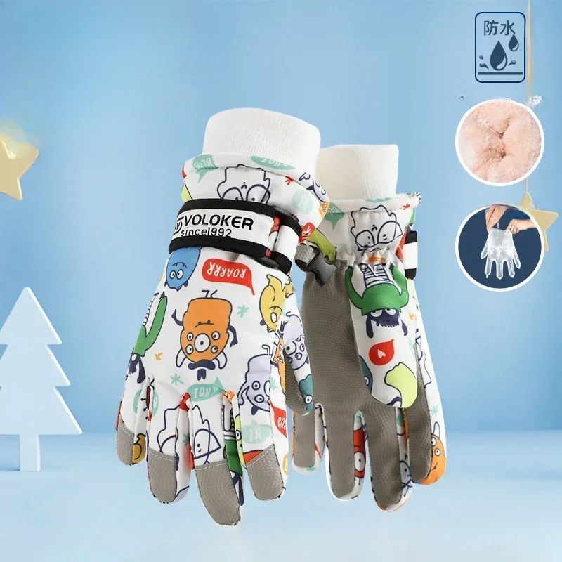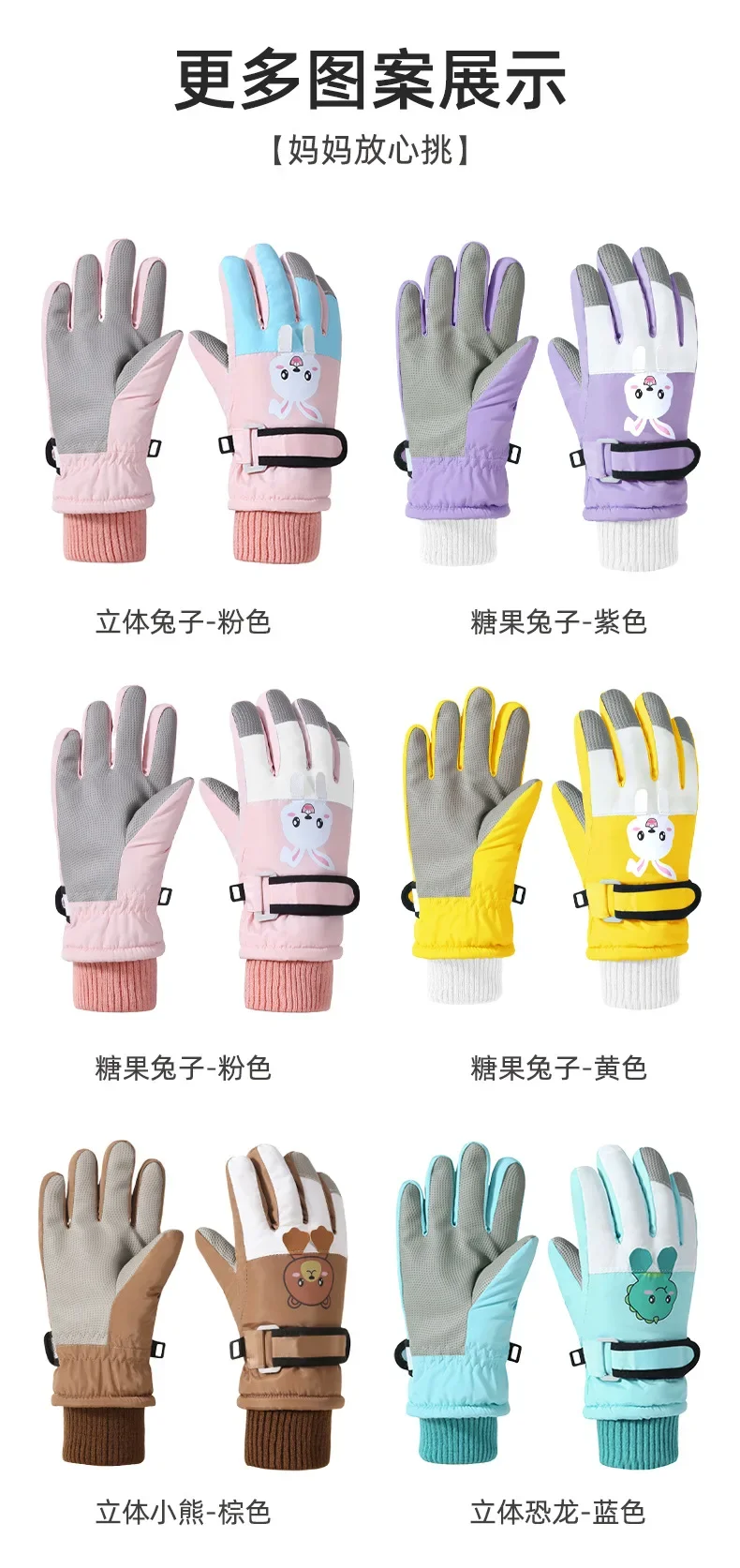 Guantes para niños, guantes de esquí con dibujos animados cálidos, además de terciopelo, guantes de invierno para niños fríos e impermeables, accesorios para niños de 4 a 12 años