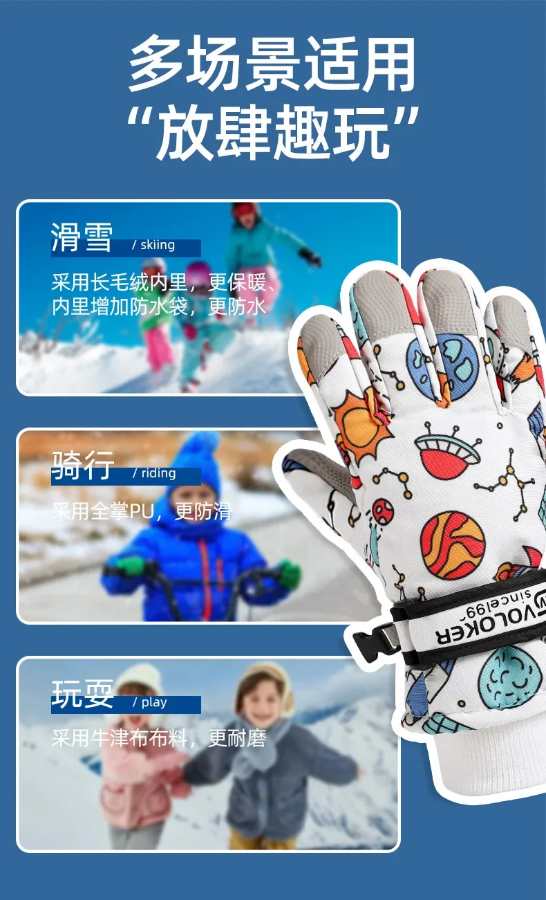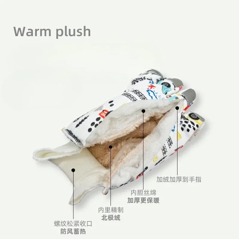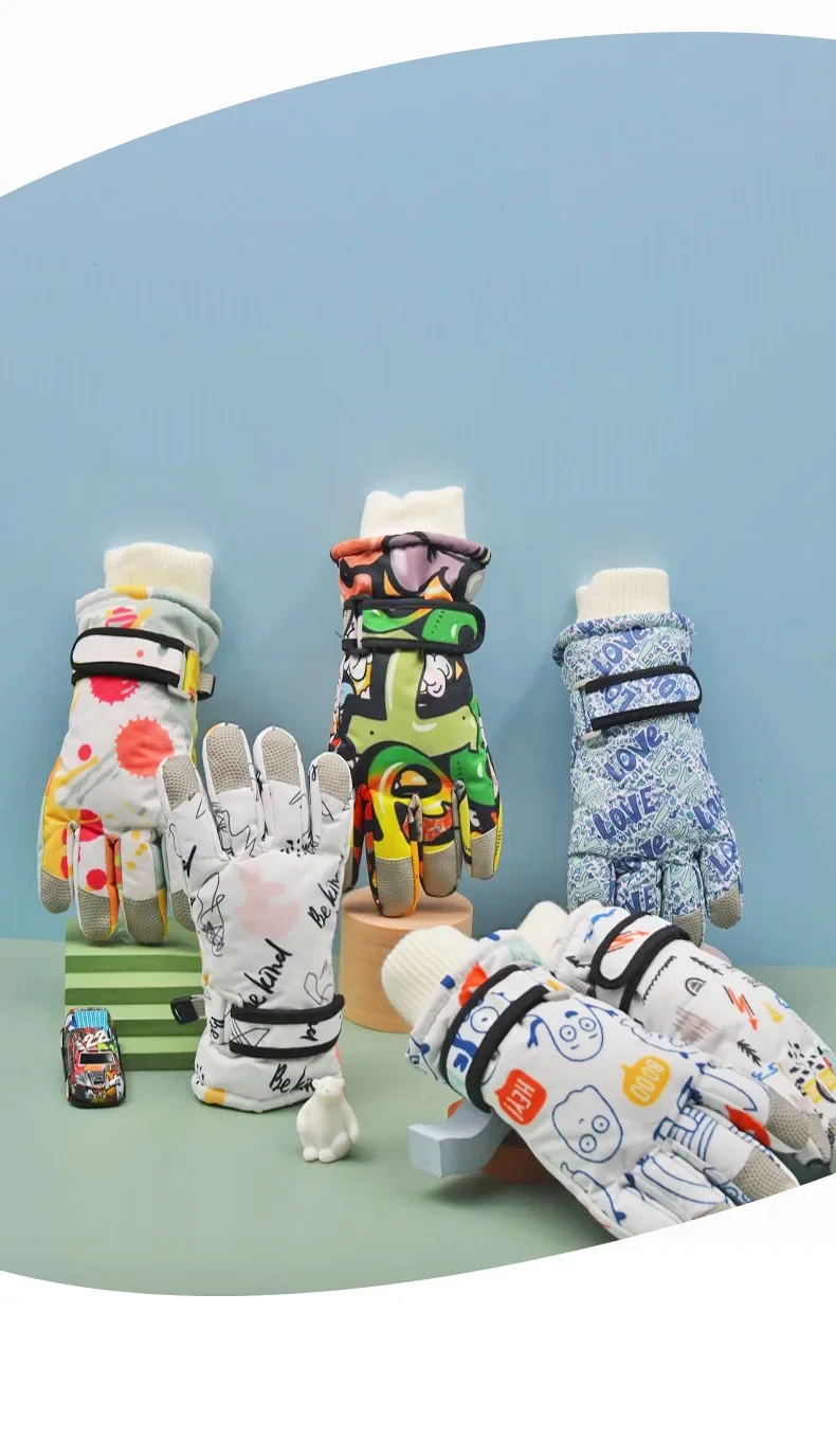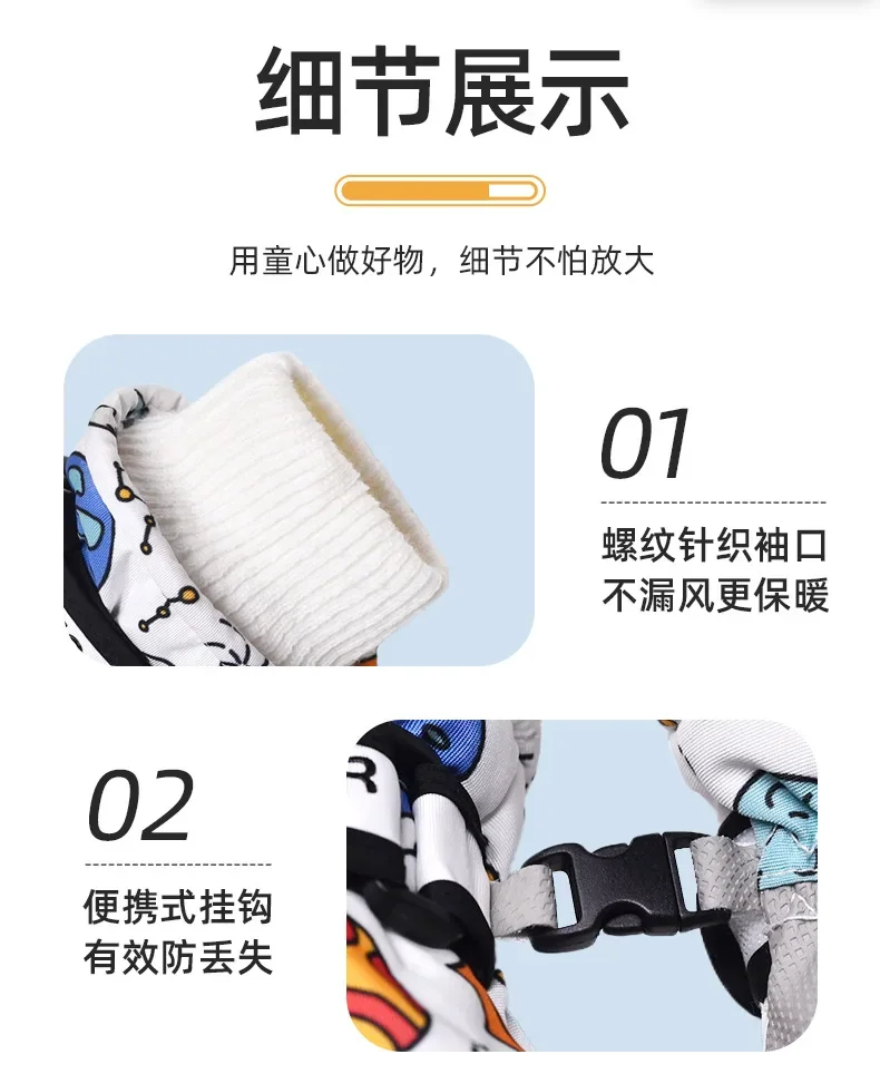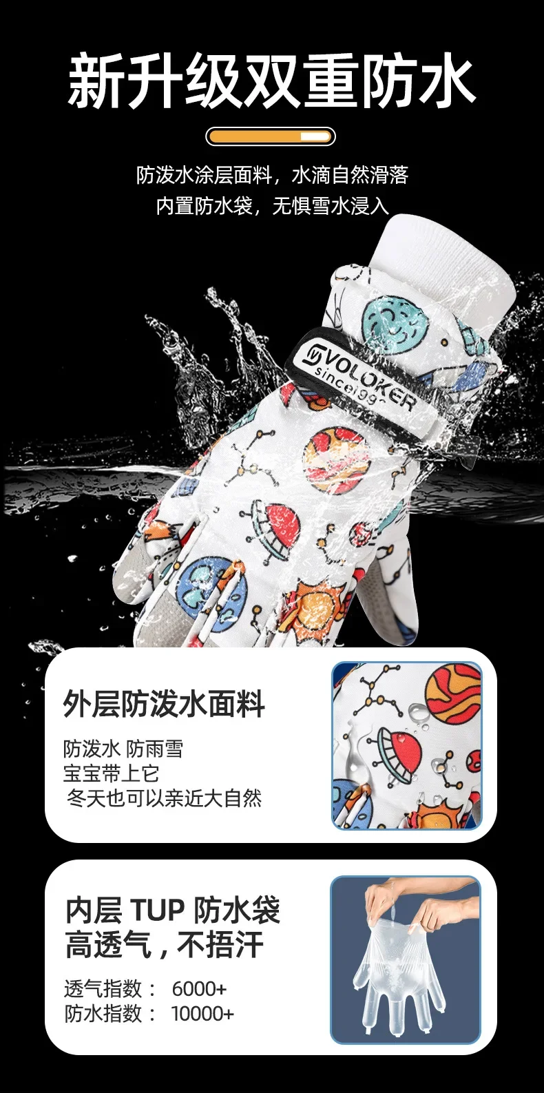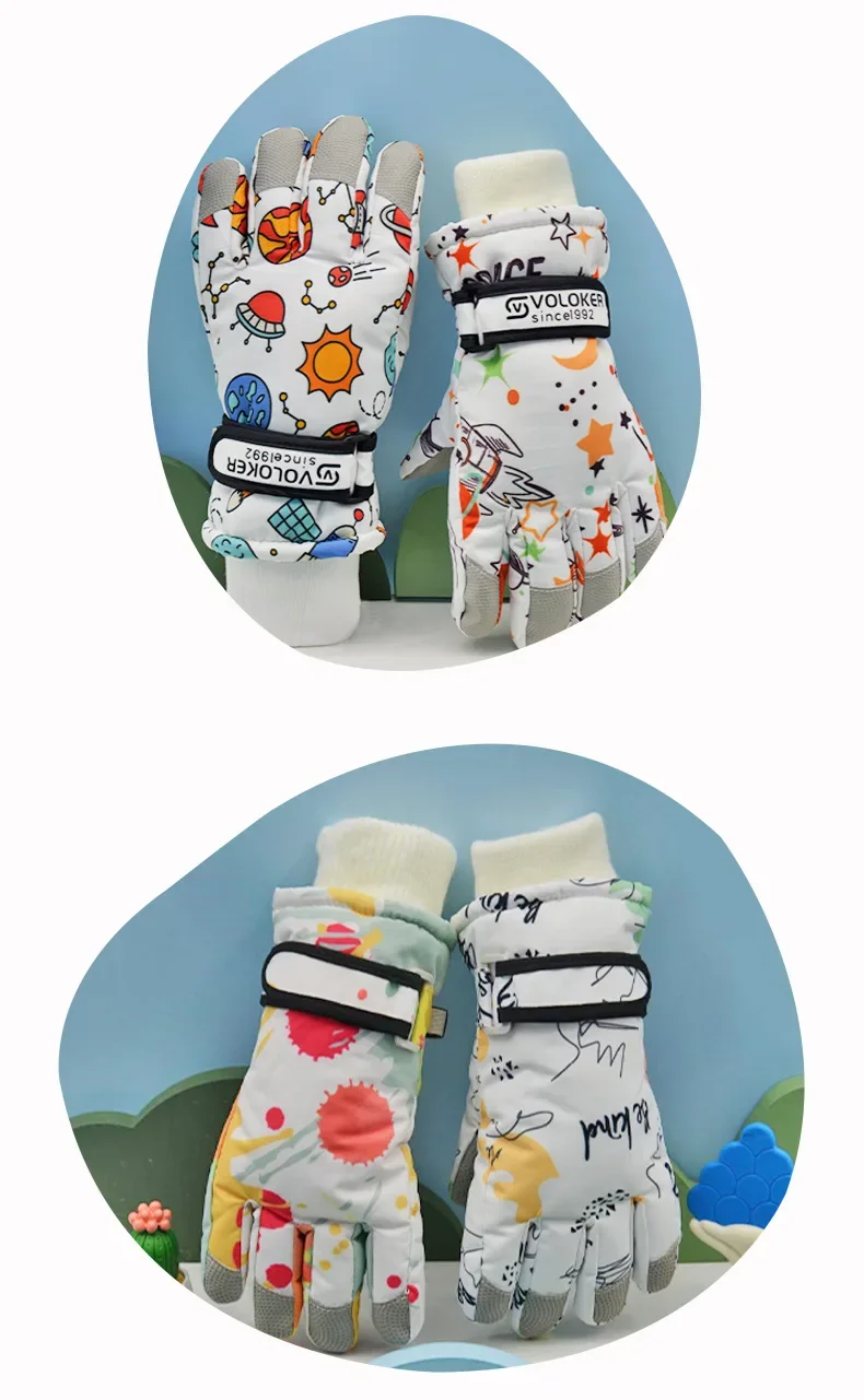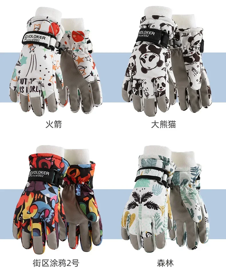 Guantes para niños, guantes de esquí con dibujos animados cálidos, además de terciopelo, guantes de invierno para niños fríos e impermeables, accesorios para niños de 4 a 12 años