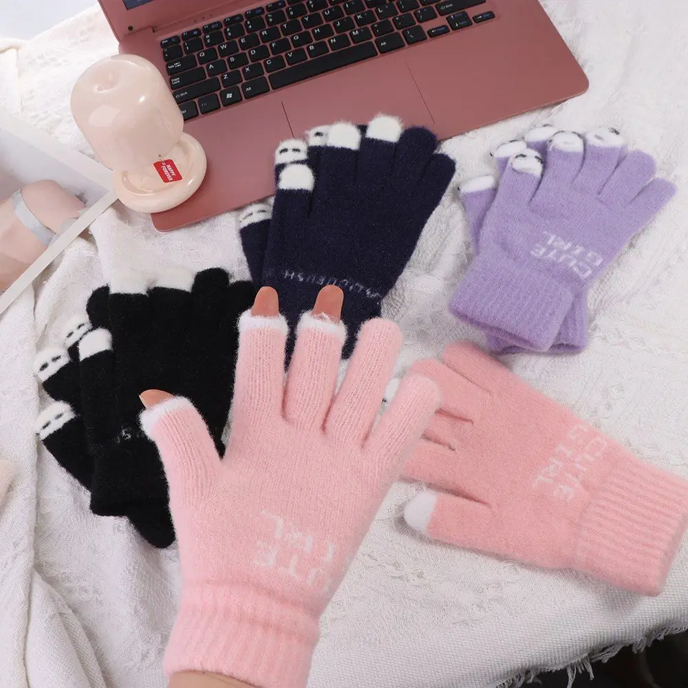 Comprar Guantes de pantalla táctil de invierno para mujer, guantes gruesos de felpa, cálidos, de lana de punto, a prueba de viento, para exteriores
