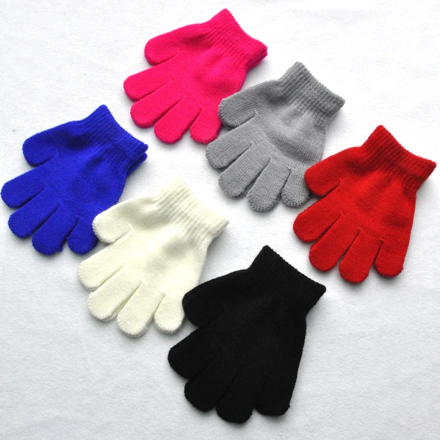 Comprar Guantes de punto de invierno para niños, manoplas de dedo completo peludas sólidas, calentador de manos para escritura, niños, estudiantes de jardín de infantes, 3-7 años