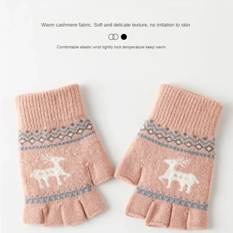Comprar Guantes de punto sin dedos para niños y niñas, manoplas cálidas de ciervo lindo para estudiantes, Escritura al aire libre, ciclismo, invierno y otoño