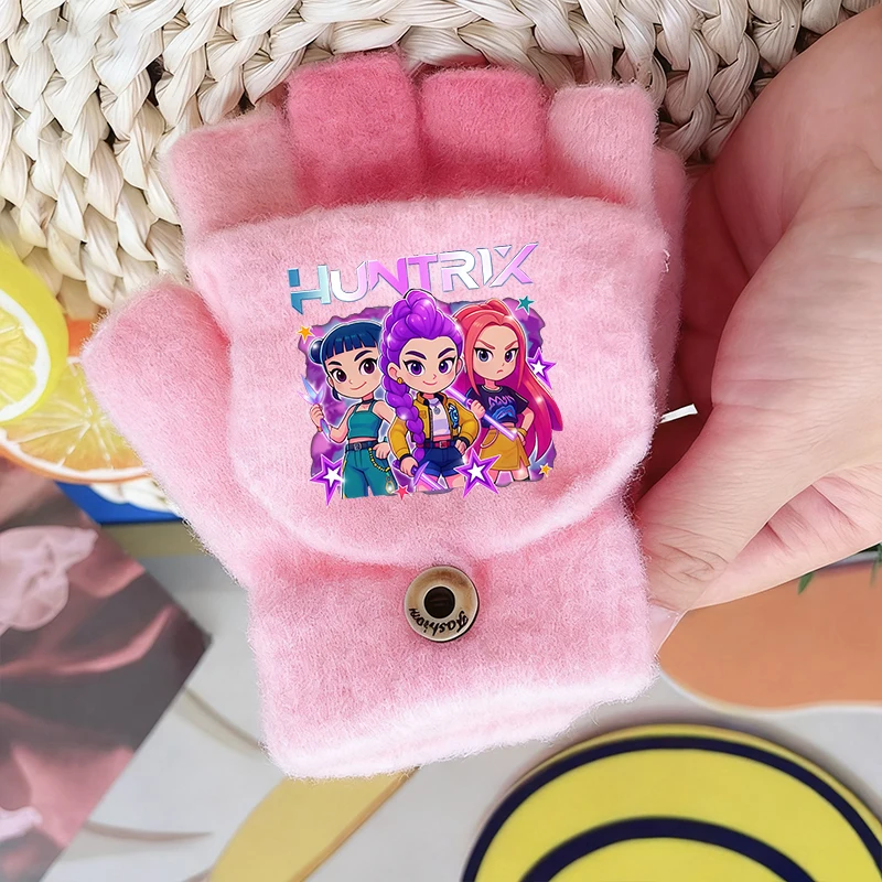 Guantes con tapa de medio dedo para niños y niñas, K Pop Demon Hunters, moda de dibujos animados, guantes de invierno, Unisex, cálido, regalo de cumpleaños para niños y Navidad