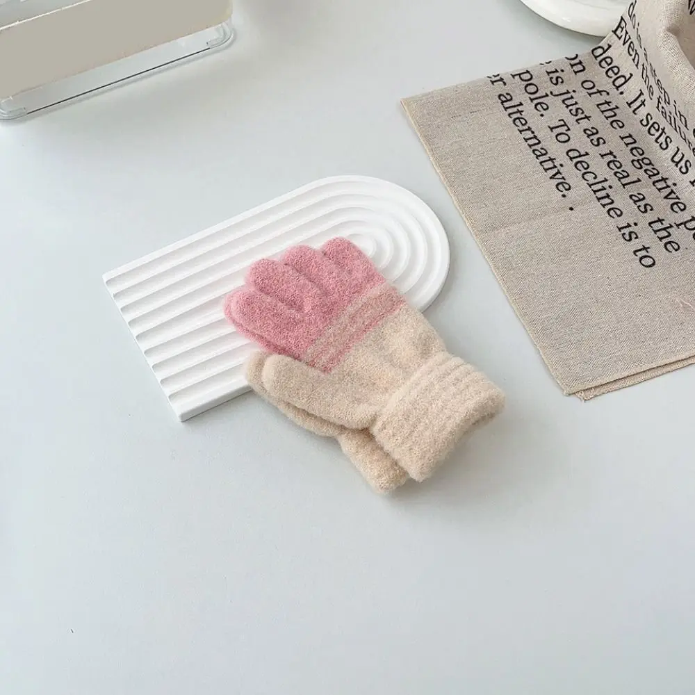 Comprar Guantes térmicos de punto con rayas de contraste cálidos para invierno, guantes para niños, nuevos guantes gruesos para deportes al aire libre con dedos completos