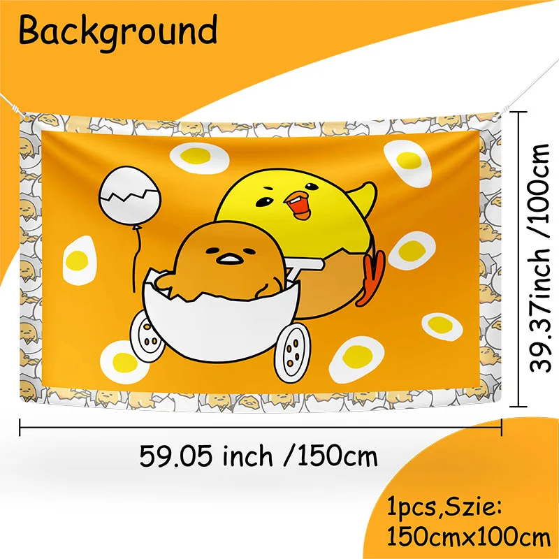 Comprar Gudetama Un tema de aventura Eggcellent, suministro de decoración de fiesta desechable, pancarta, mantel, servilleta, juguete para niños, embalaje, Baby Shower