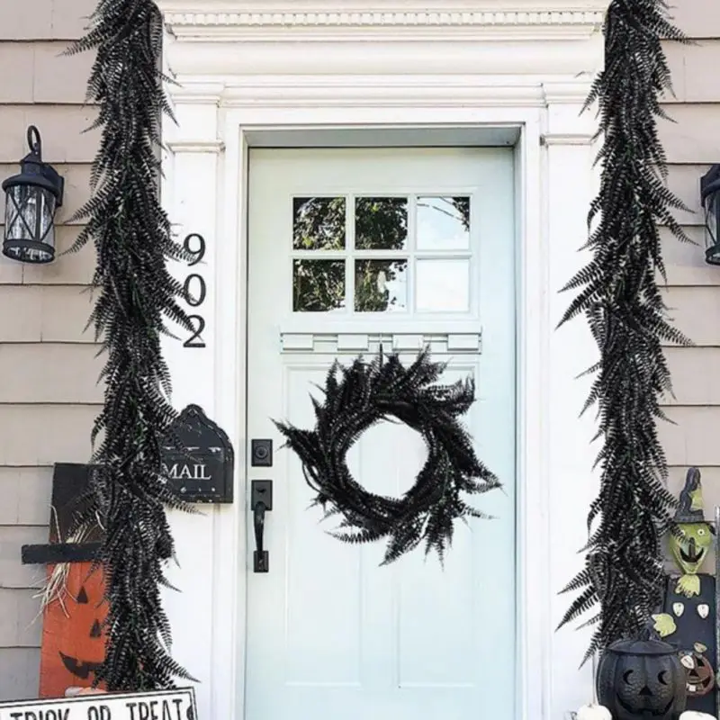 Guirnalda de hojas de hiedra verde para plantas artificiales de 1,8 M, vides colgantes verdes, rojas y negras para Navidad, fiesta de Halloween, decoración de pared al aire libre