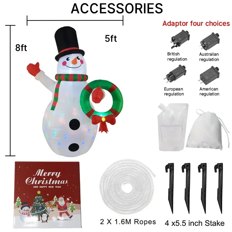 Guirnalda de muñeco de nieve de 7,8 pies, decoraciones navideñas inflables, adornos de Navidad, luces para exteriores, patio de casa, decoración para fiestas, juguetes, Reno
