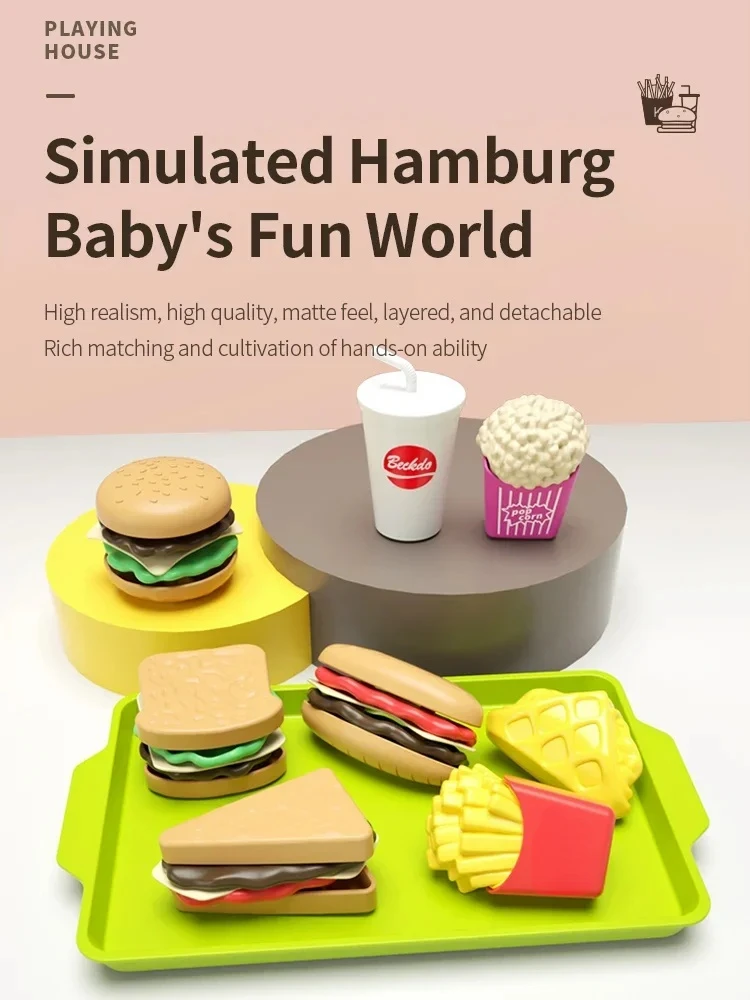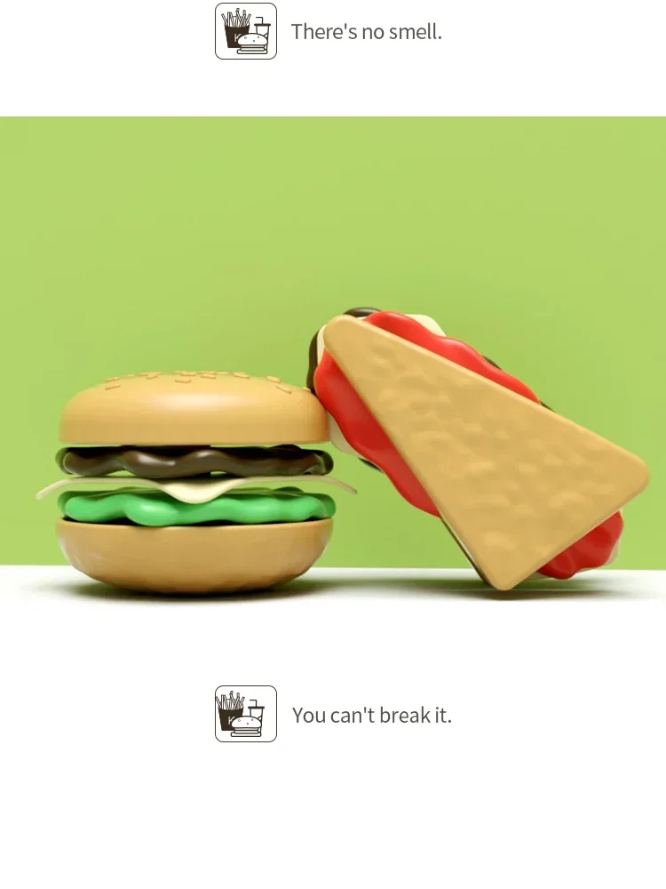 Hamburguesa de plástico desmontable para aperitivos, juguete de imitación para niños, cocina, casa de juegos, juguete de comida, hamburguesa para niños, juego de simulación, juego de cocina