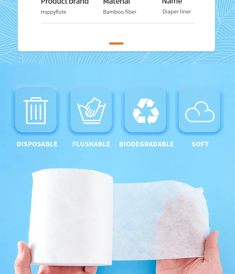 Los revestimientos para pañales biodegradables sin perfume de bambú Wegreeco están hechos de viscosa 100% bambú.Suave y cómodo para la parte inferior del bebé. Esos revestimientos de bambú sin perfume son biodegradables.¡Todos los padres merecen esto!