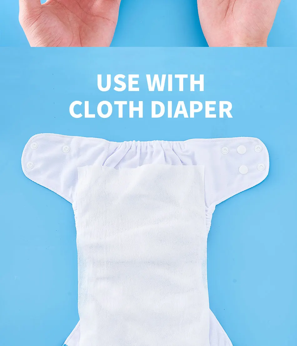 Los forros de pañales de tela desechables son fáciles de quitar y simplemente coloque el forro entre la parte inferior del bebé y el pañal.Los padres simplemente quitan estos revestimientos y tírelos a la basura sin ningún paso adicional para limpiar el desorden.