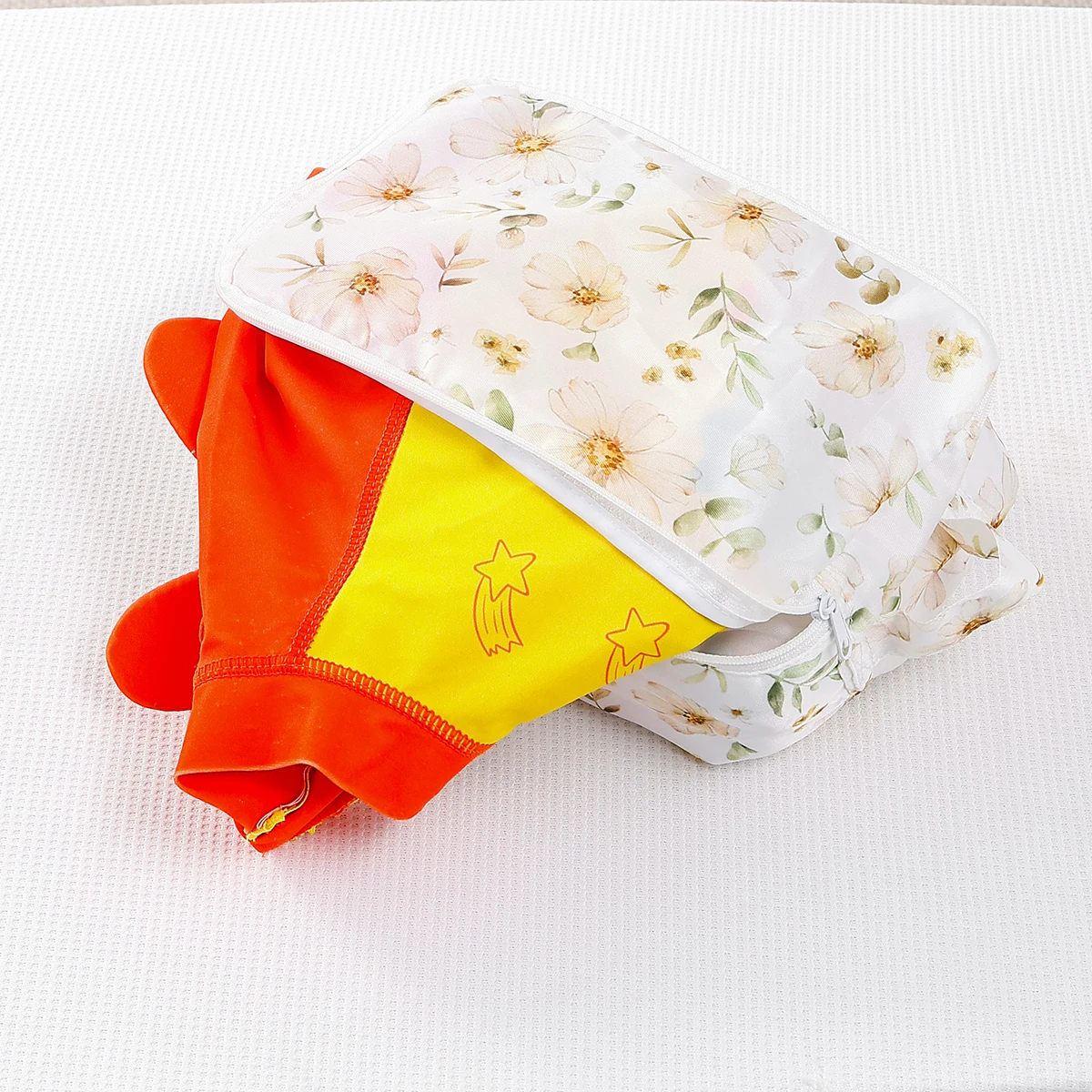 Ideal para guardar paños húmedos y secos, esta bolsa sirve como una solución práctica para gestionar los elementos esenciales del bebé durante los viajes o las salidas diarias.
