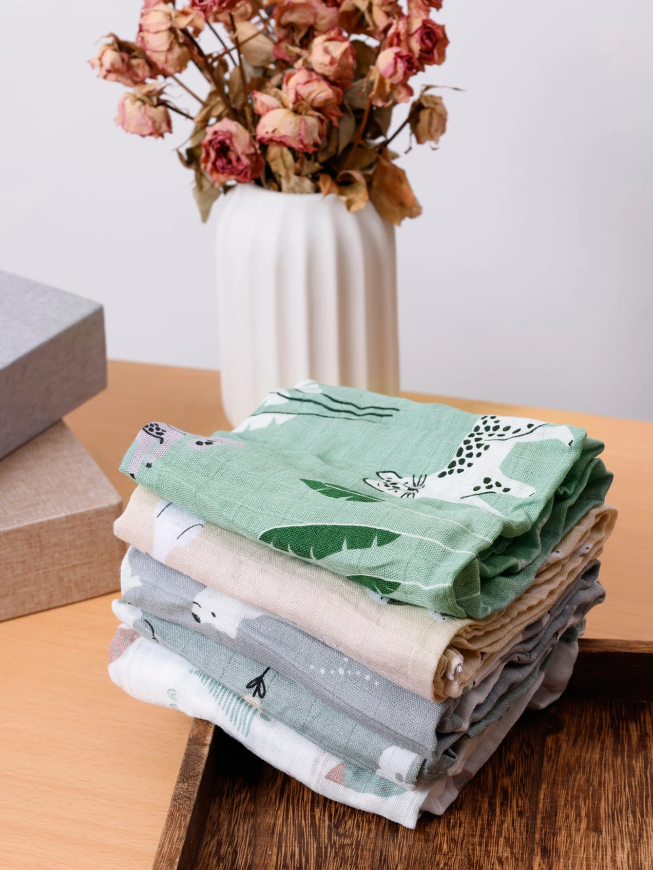 HappyFlute 5 unids/set lindos animales estampado muselina envoltura alimentación paño para eructar recién nacido suave tela de algodón de bambú manta toallita