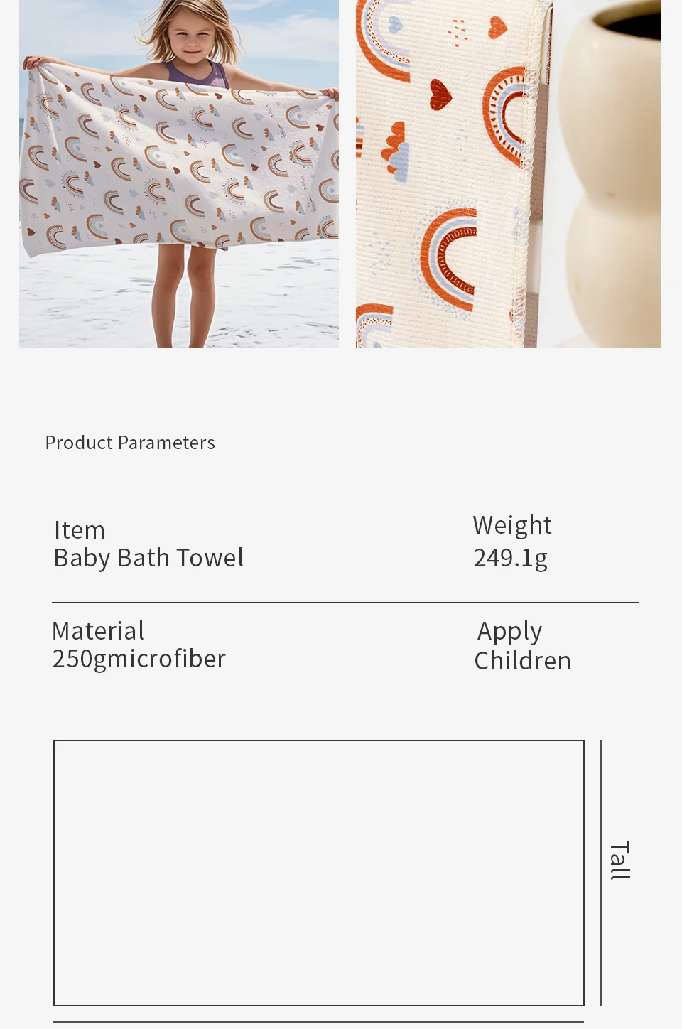 Con un estampado de concha, delfín, arcoíris y ballena, esta toalla agrega un toque divertido y vibrante a la hora del baño.