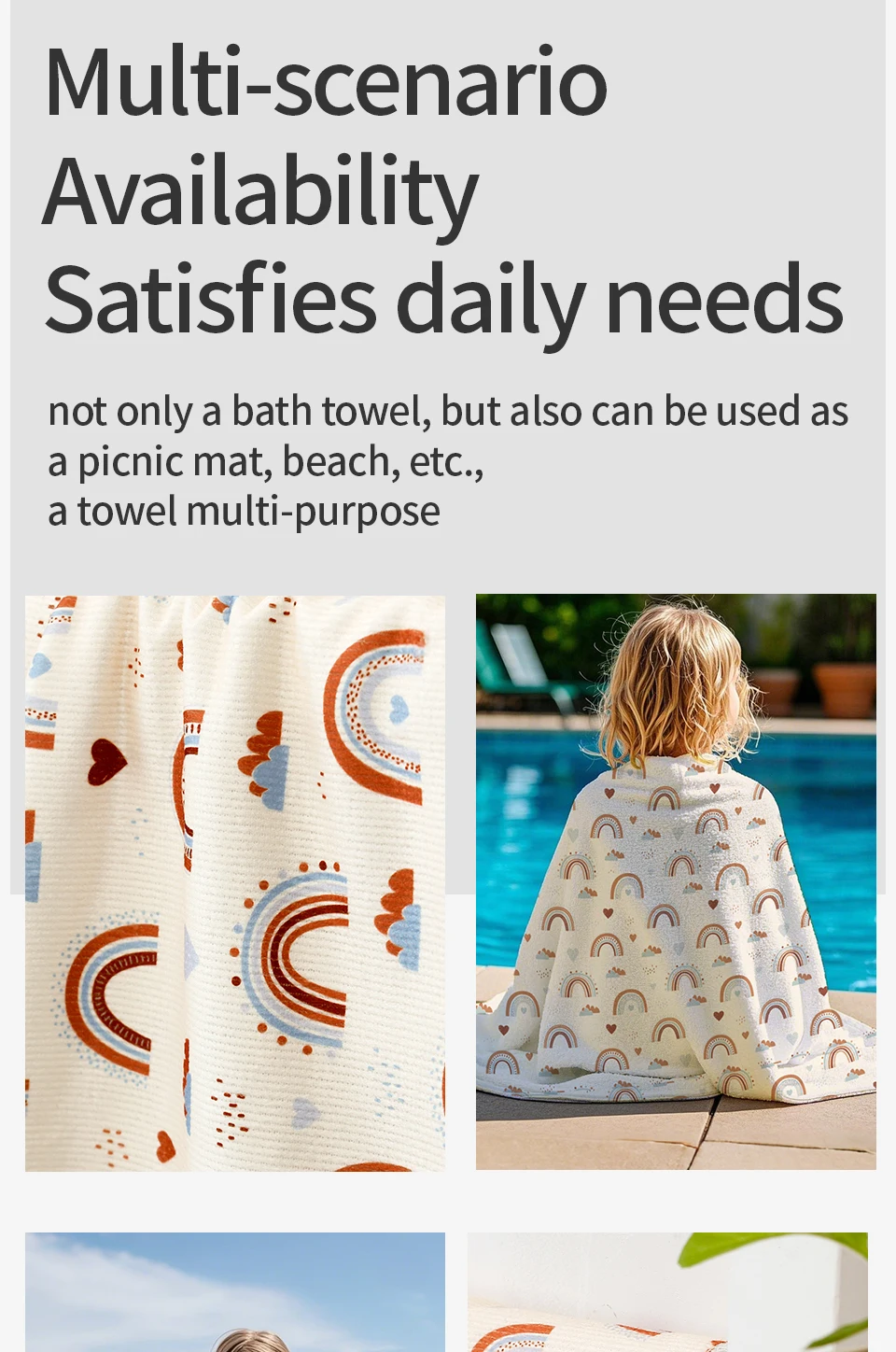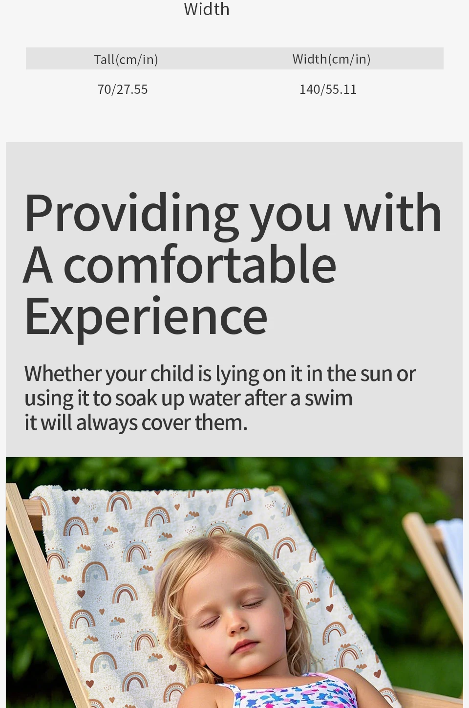 Ideal para uso en la playa, la piscina o las vacaciones, esta toalla es imprescindible para las actividades de verano con niños.