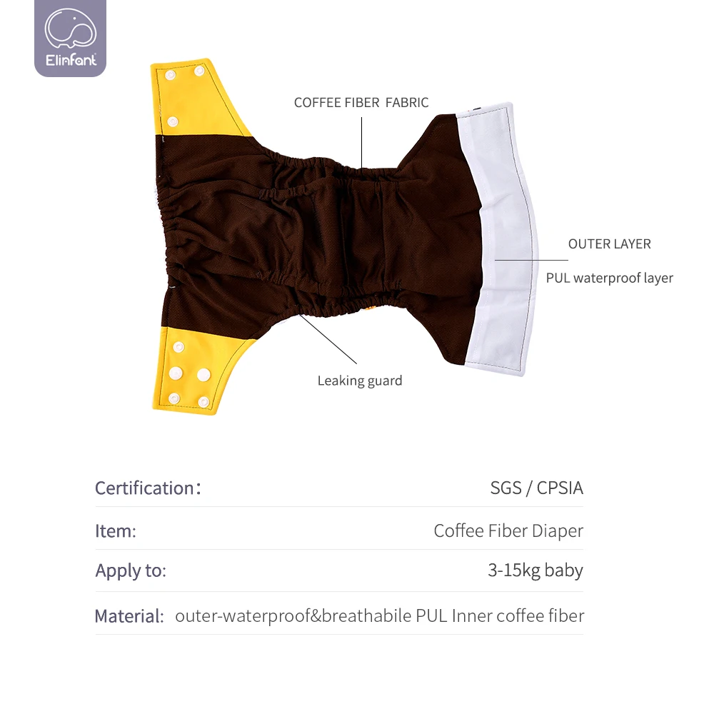 Comprar HappyFlute nueva capa de tela de fibra de café interior súper transpirable y suave con estampado de dibujos animados de una pieza para bebé de 3-15kg