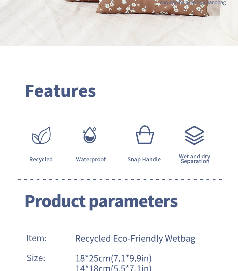 Tamaño:Bolsa húmeda grande: 18*25 cm y bolsa húmeda pequeña: 14*18 cm