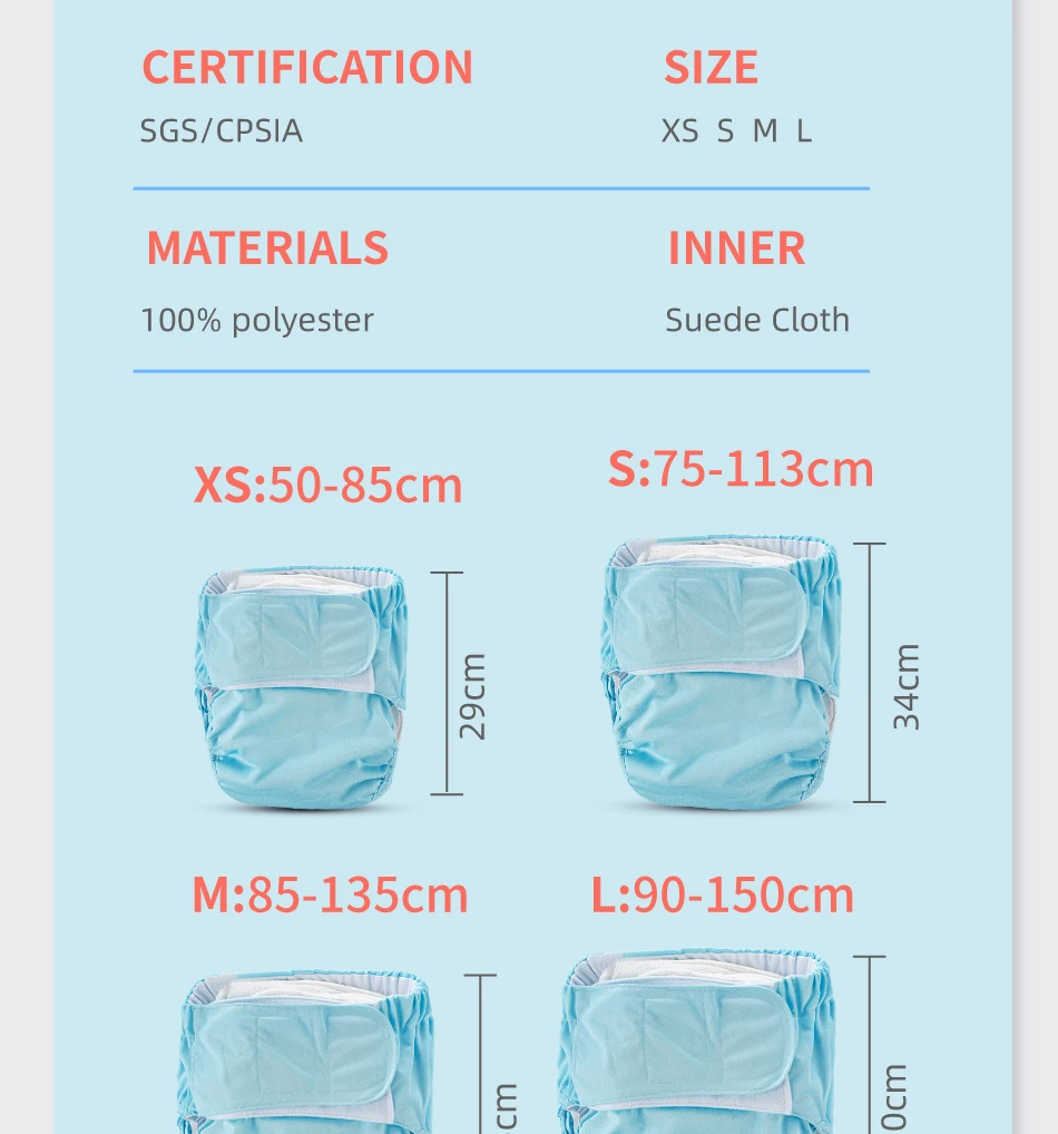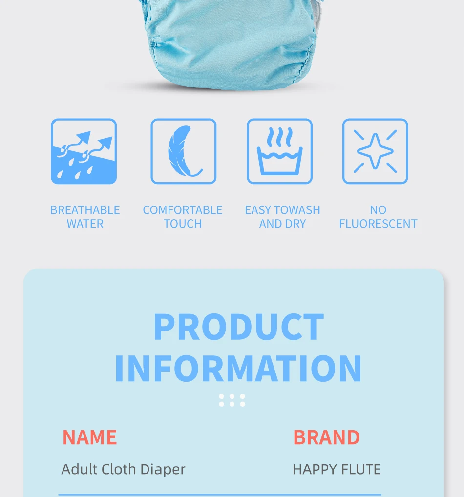 Pañal HappyFlute de 4 tamaños de gran tamaño para niños, pañal de tela impermeable con gancho y bucle con inserto Extra grande para pañales grandes para bebés y adultos