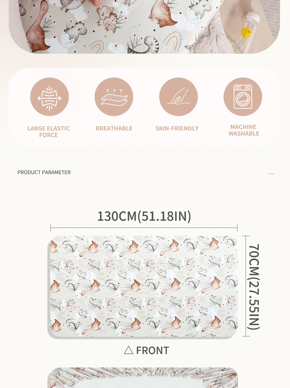 SE ADAPTA A LA MAYORÍA DE ALMACENAMIENTO:Deja de preocuparte si esta sábana para cuna se adaptará a tu cambiador; gracias a sus construcciones bien pensadas, nuestra sábana para cuna Fit puede adaptarse a la mayoría de los cambiadores estándar de hasta 130*70 cm.