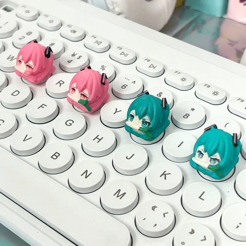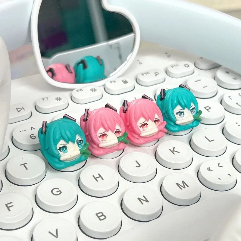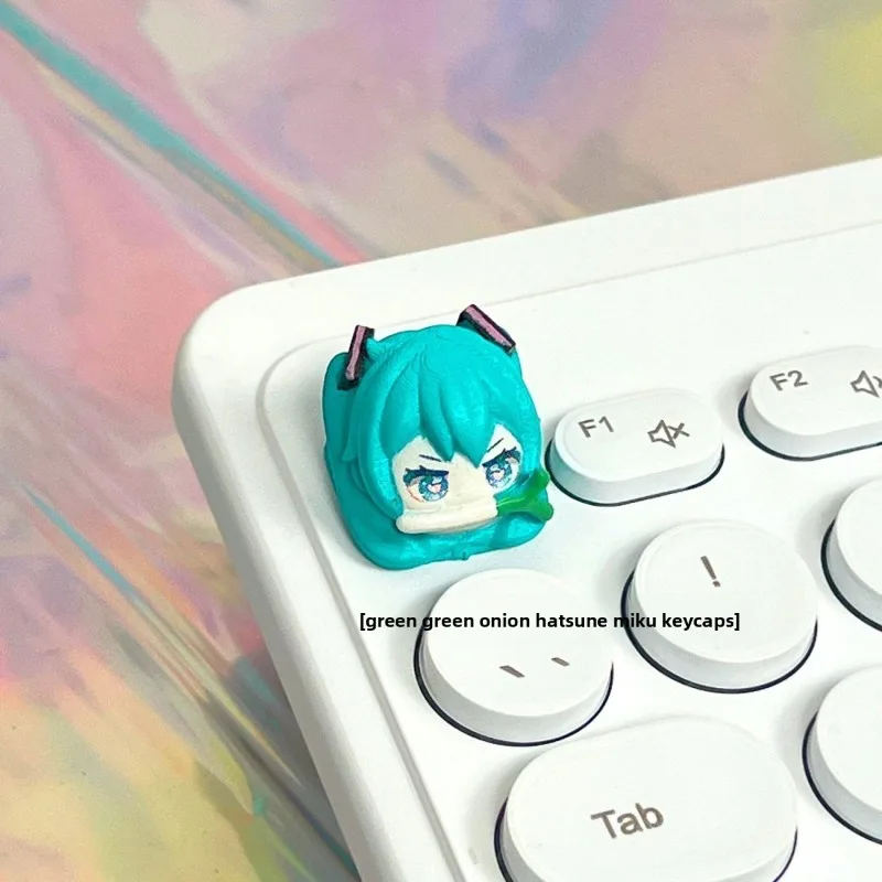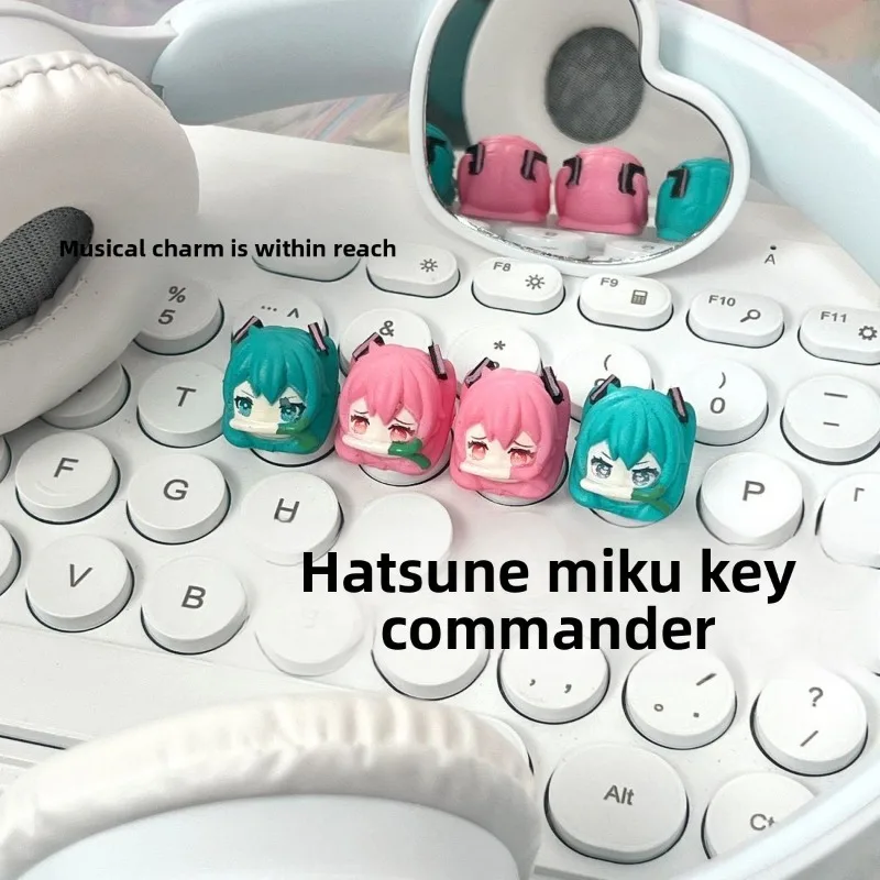 Hatsune Miku-teclas de resina de dibujos animados, teclas con personalidad creativa, Teclado mecánico de eje transversal DIY, accesorios universales, regalo nuevo