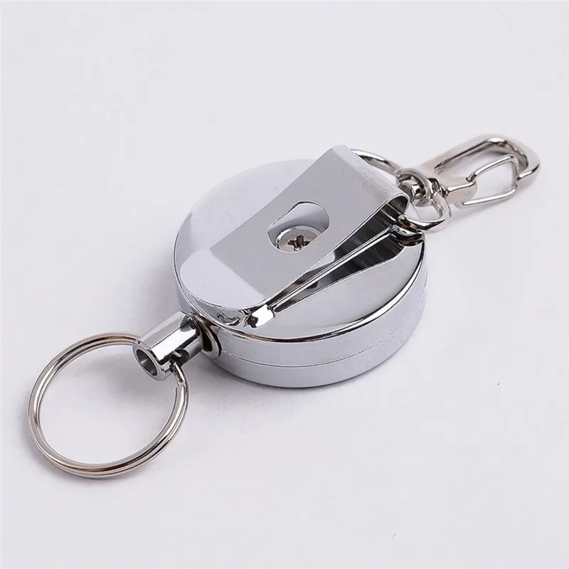 Hebilla de fácil extracción totalmente metálica, carrete de insignia retráctil para exteriores, extractor de cuerda de alambre, llavero antipérdida y antirrobo, 4cm, 1 ud.