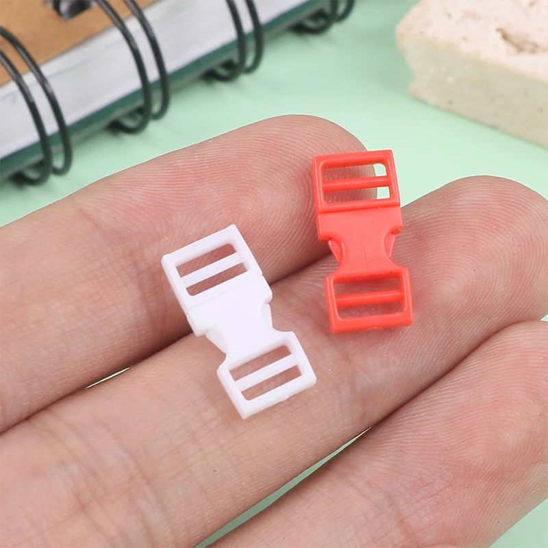 Comprar Hebilla pequeña de 6mm para bolso de muñeca, pulsera de plástico hecha a mano, hebilla de correa, Mini Botón de mochila, accesorios de Camping para casa de muñecas, 10 piezas