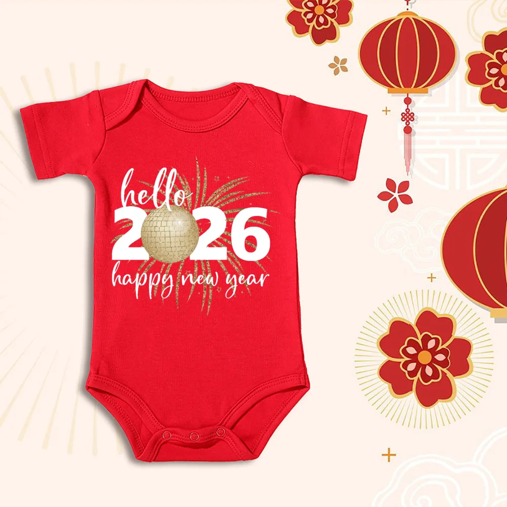 Comprar Hello 2026-Body de algodón con estampado de Año Nuevo para bebé, pelele de algodón para bebé recién nacido, mono de manga corta, ropa de 1er Año Nuevo