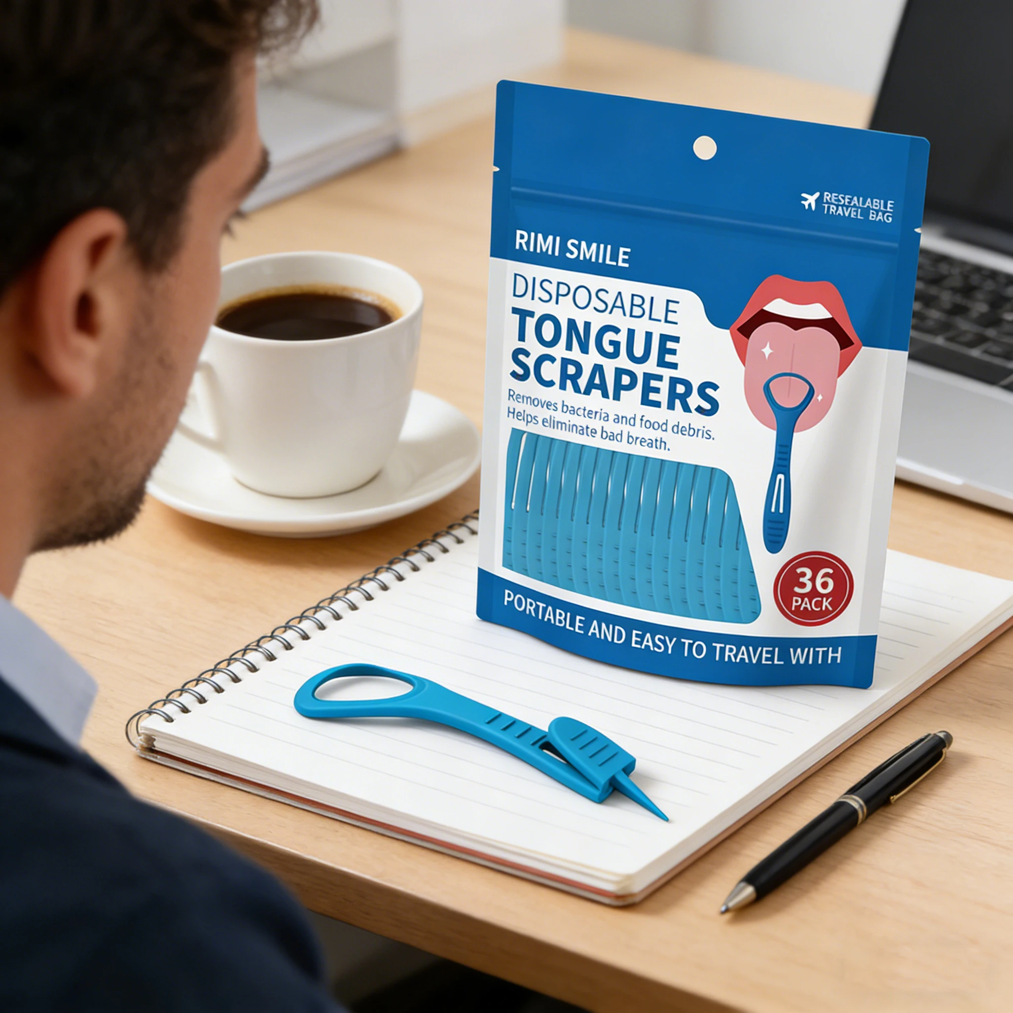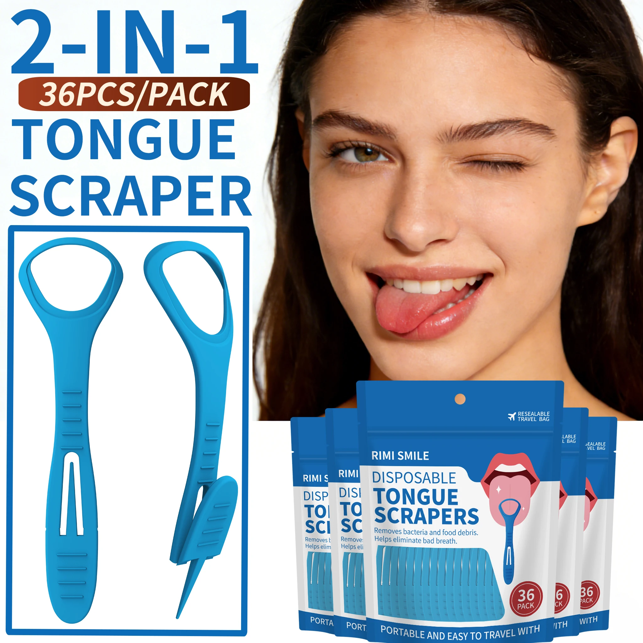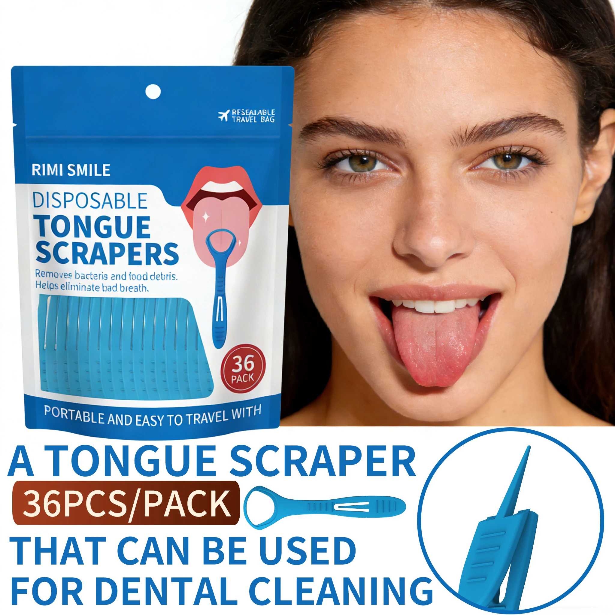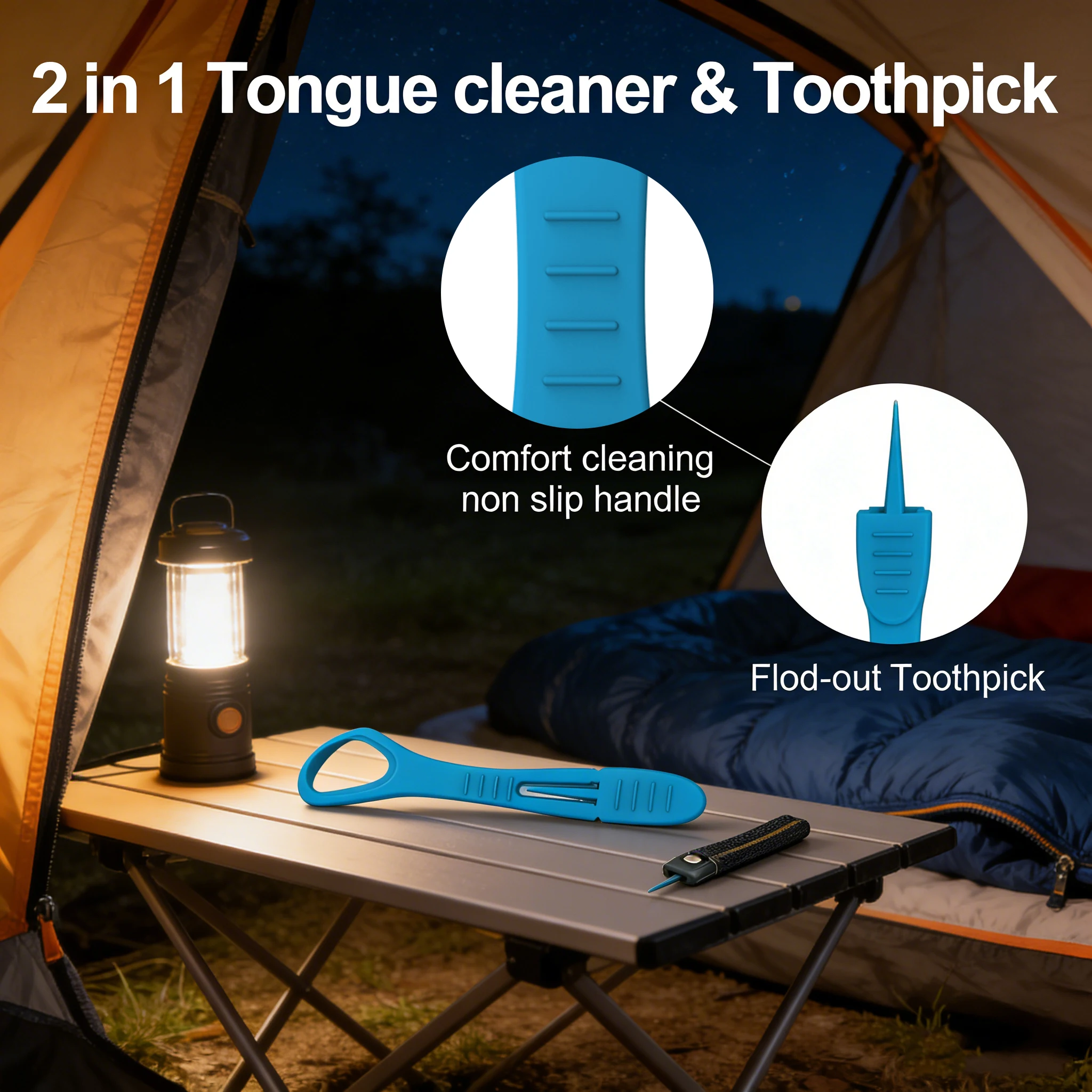 Herramienta bucal liviana 2 en 1 | Rascador de lengua + palillo de dientes para viajeros, campistas y hogar, herramienta portátil de cuidado bucal para viajes y acampadas