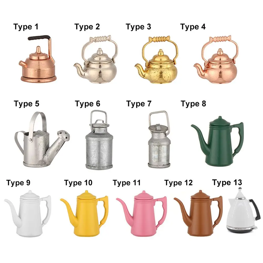 Hervidor para casa de muñecas a escala 1:12, tetera en miniatura, Mini regadera, accesorios para muñecas
