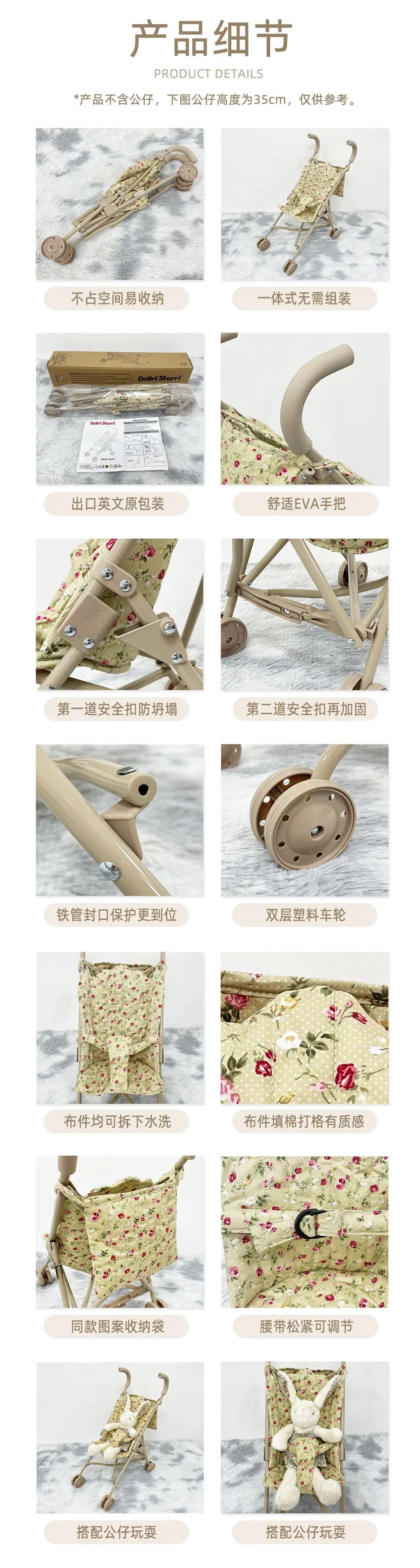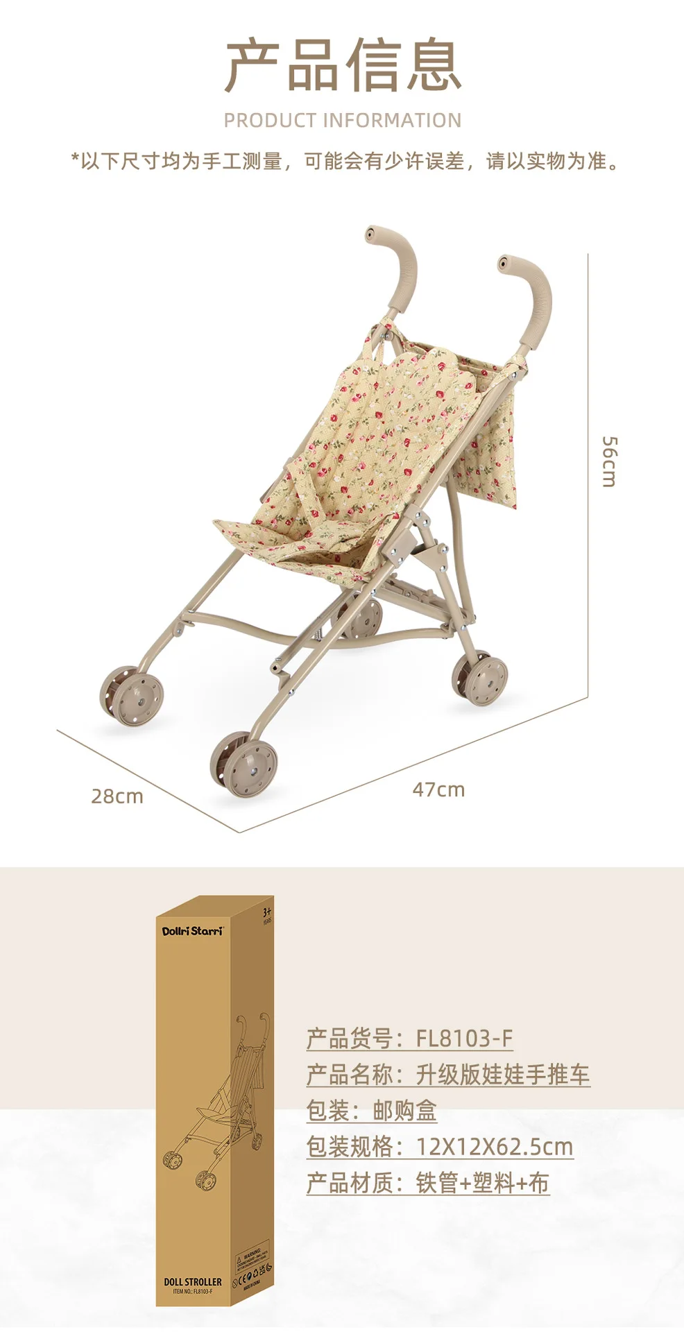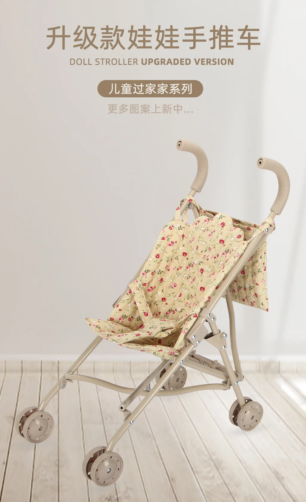 High View Baby Small Floral Cushion Trolley For Doll Toys High Appearance Level Children's Trolley Toy Stroller
