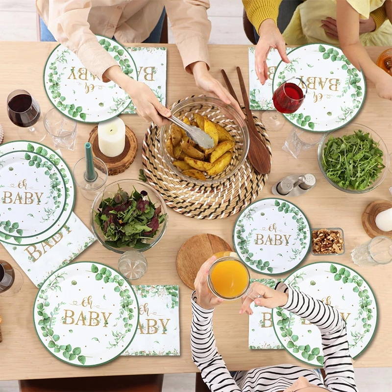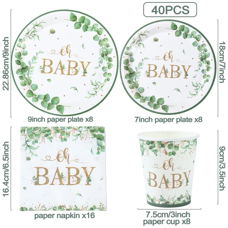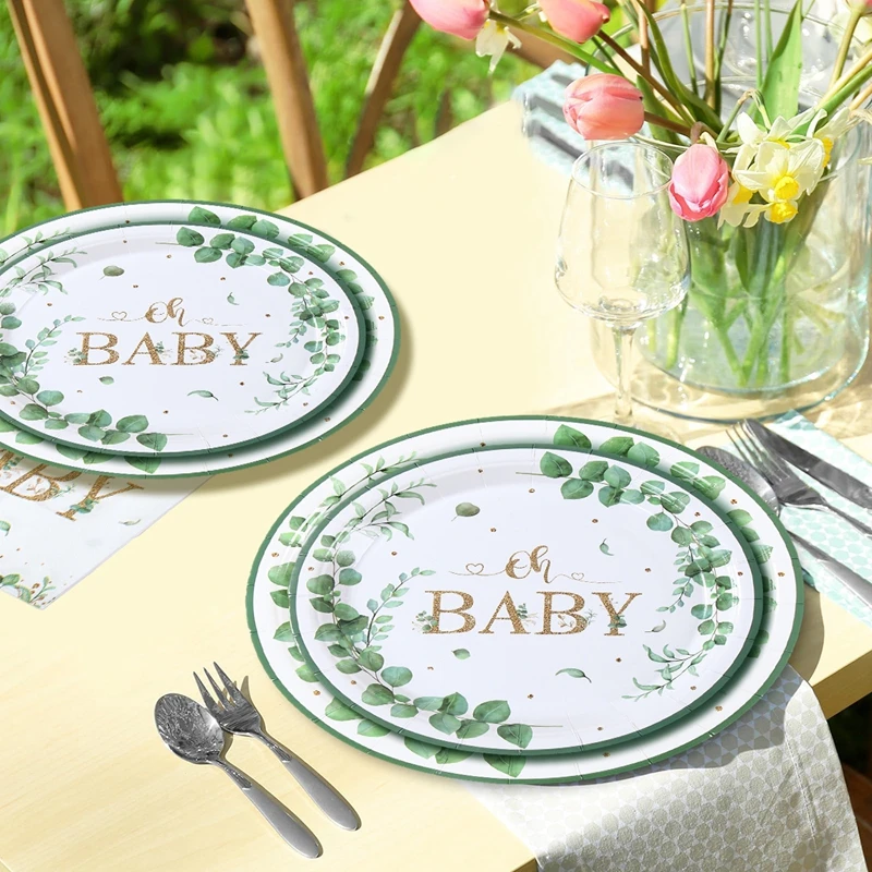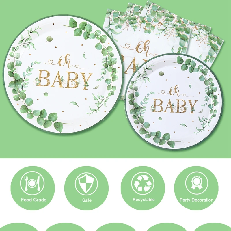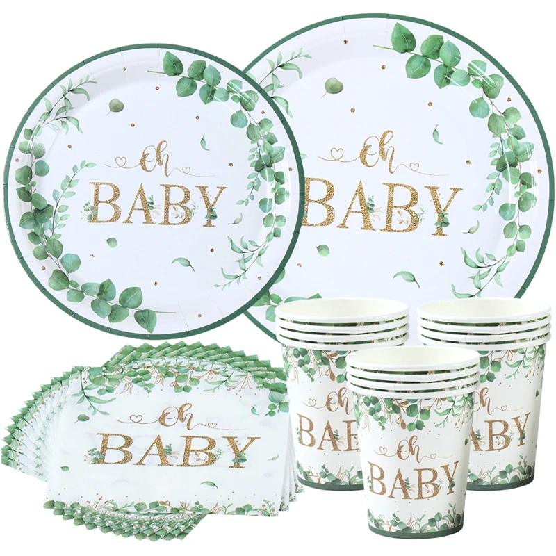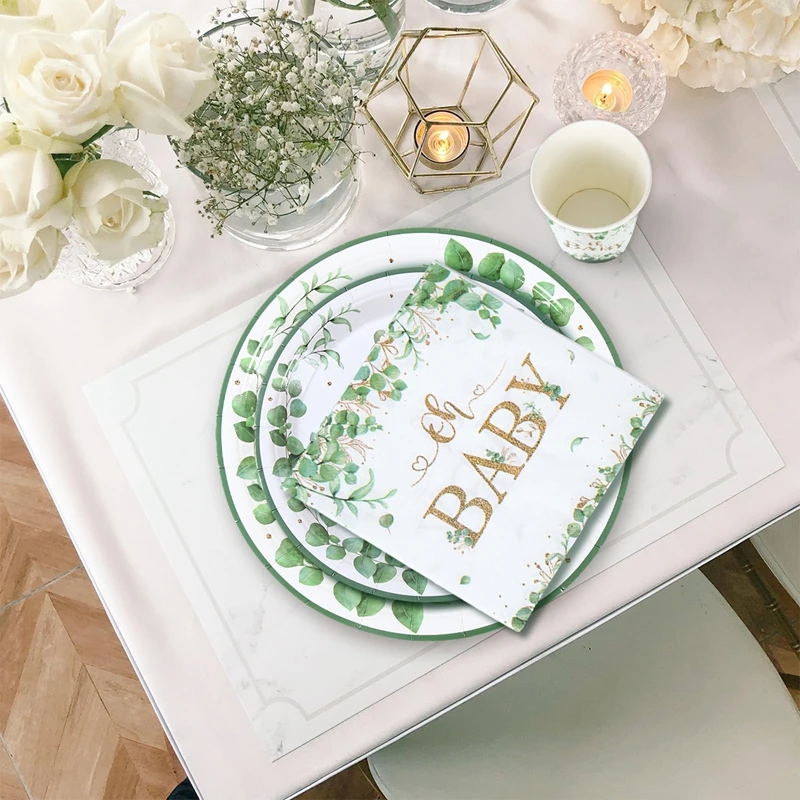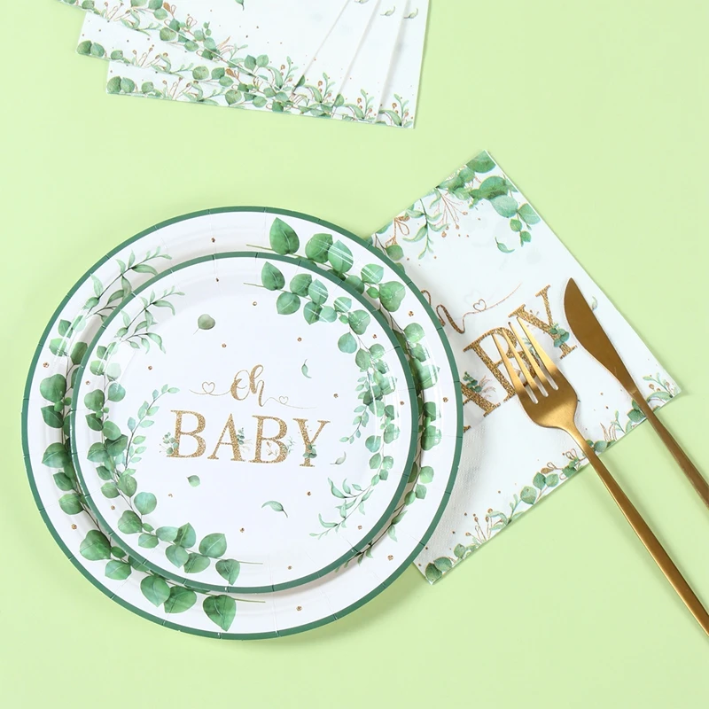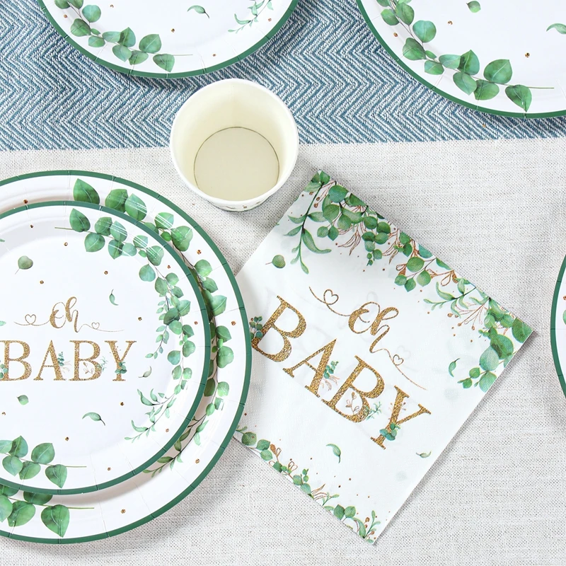 Hoja verde bronceado Oh bebé plato de papel taza servilleta género revelar fiesta vajilla desechable decoración para Baby Shower suministros para fiestas